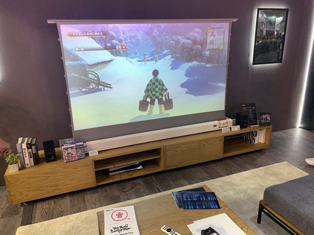 また、ゲーミングプロジェクターも登場している。BenQのブースでは、スクリーンに投影された大画面でゲームを試遊できるようになっていた。最高峰の機種では、4K映像を240Hzのリフレッシュレートで映し出すという。