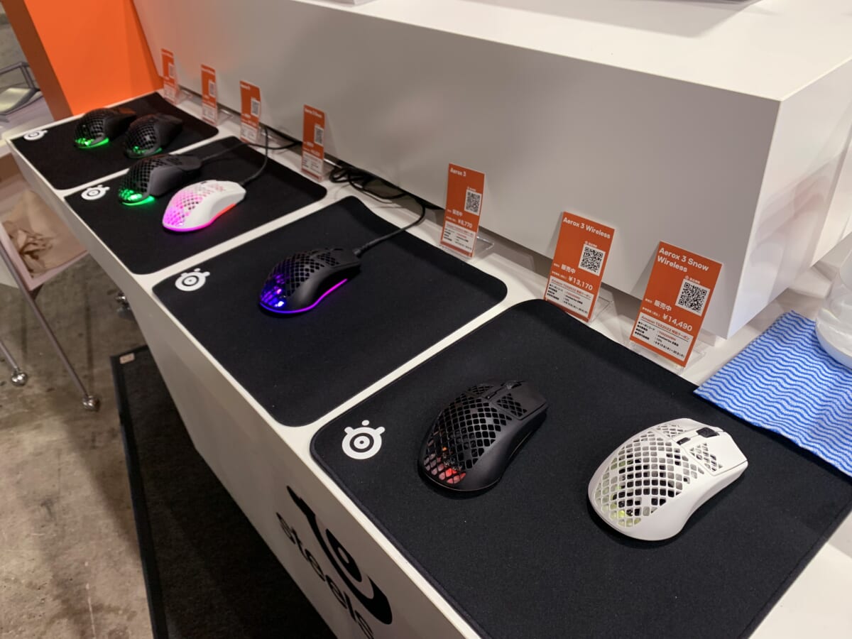 マウスは、強いコンセプトに基づいた、尖った製品が多いように感じられた。たとえば、本体を極端に軽量化するため、網目状のボディを採用したFPS用のモデルだ。FPSの重要な要素として狙いを定める「エイム」があるが、メーカー担当者によれば「軽いマウスのほうが、カーソルを瞬時に、正確に停止する動作がしやすい」のだという。