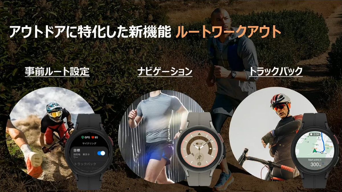また、Proモデル限定の機能として「ルートワークアウト」を搭載します。これは、あらかじめ作成した道順を読み込んで、正しい方向に進んでいるかを知らせる機能です。トレッキングで道を確かめたり、競技大会と同じコースを走ったりするときの手助けになります。