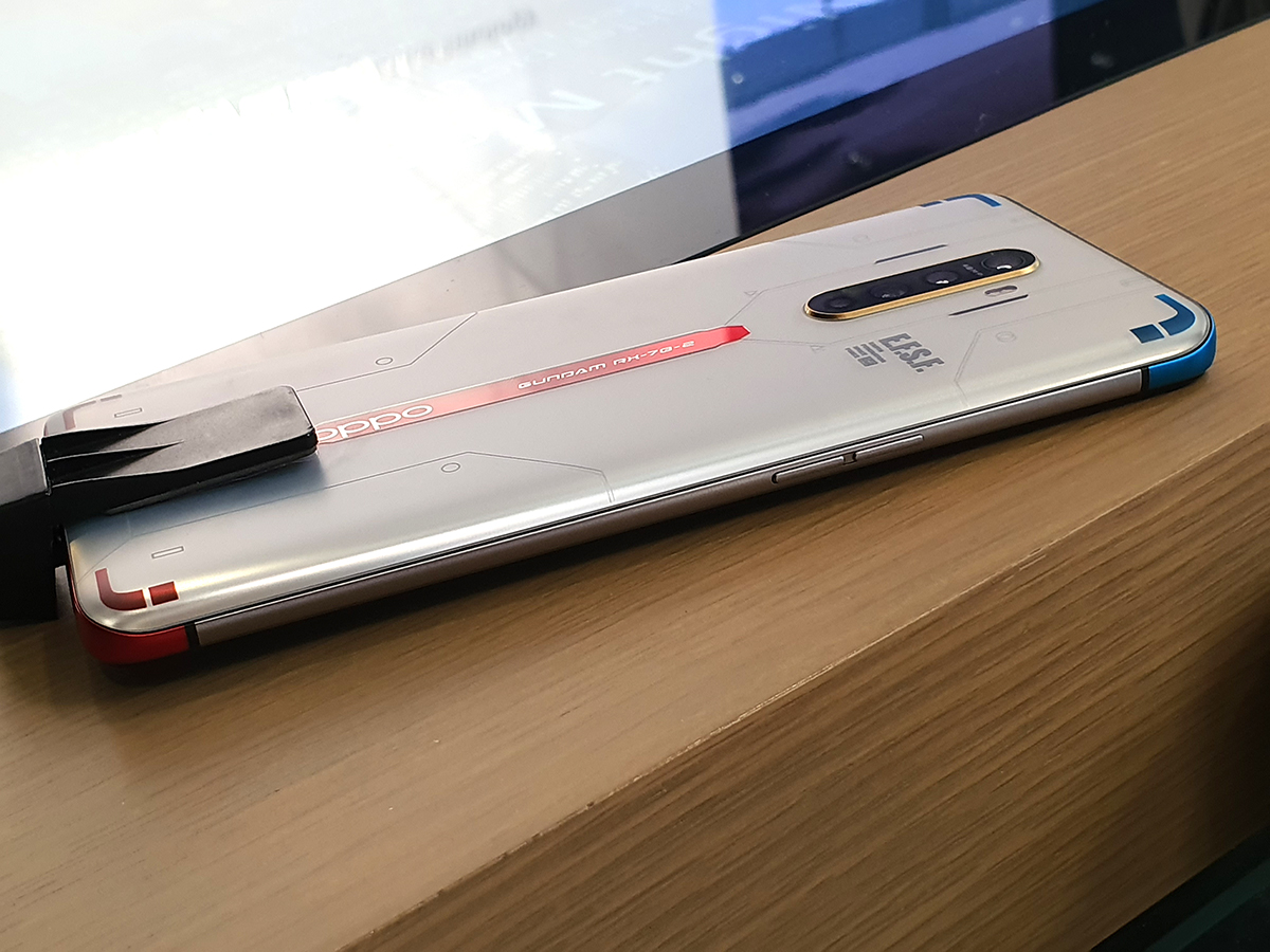 名探偵コナンスマートフォンはOPPOのキャラクターモデルの中でも行くところまで行ってしまったと思えるほどの製品でした。ここまで箱が大きいと輸送も大変ですよね。こんな製品を出せたのは、その前にも凝ったマニアックなコラボモデルを出したからできたのでした。OPPOの目立ったコラボスマートフォンとして有名なのは2019年の「OPPO Reno Ace GUNDAM Limited Edition」。そう、ガンダムとのコラボモデルです。このモデルは2019年がガンダム放送開始40周年ということを記念して発売されました。日本ではなく中国のガンダムファン向けというのが面白いところですね。白、赤、青のトリコロールカラーを纏い、モビルスーツのデザインはRX-78-2を忠実に再現しています。