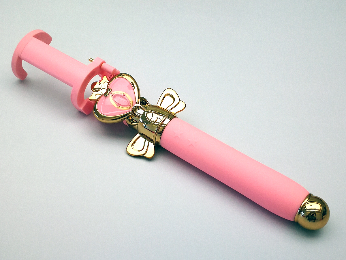 さらに自撮りスマホらしく自撮り棒が付属するのですが、これが「スパイラルハートムーンロッド」そのものなのです。セーラームーンがいざという時に取り出すこのスティックを握りながら自撮りができる、これはもうセーラームーンファンにとって至福のひとときでしょう。ここまで凝ったアクセサリが出てきたのは、おそらくこのM8 セーラームーン限定版が最初だと思います。