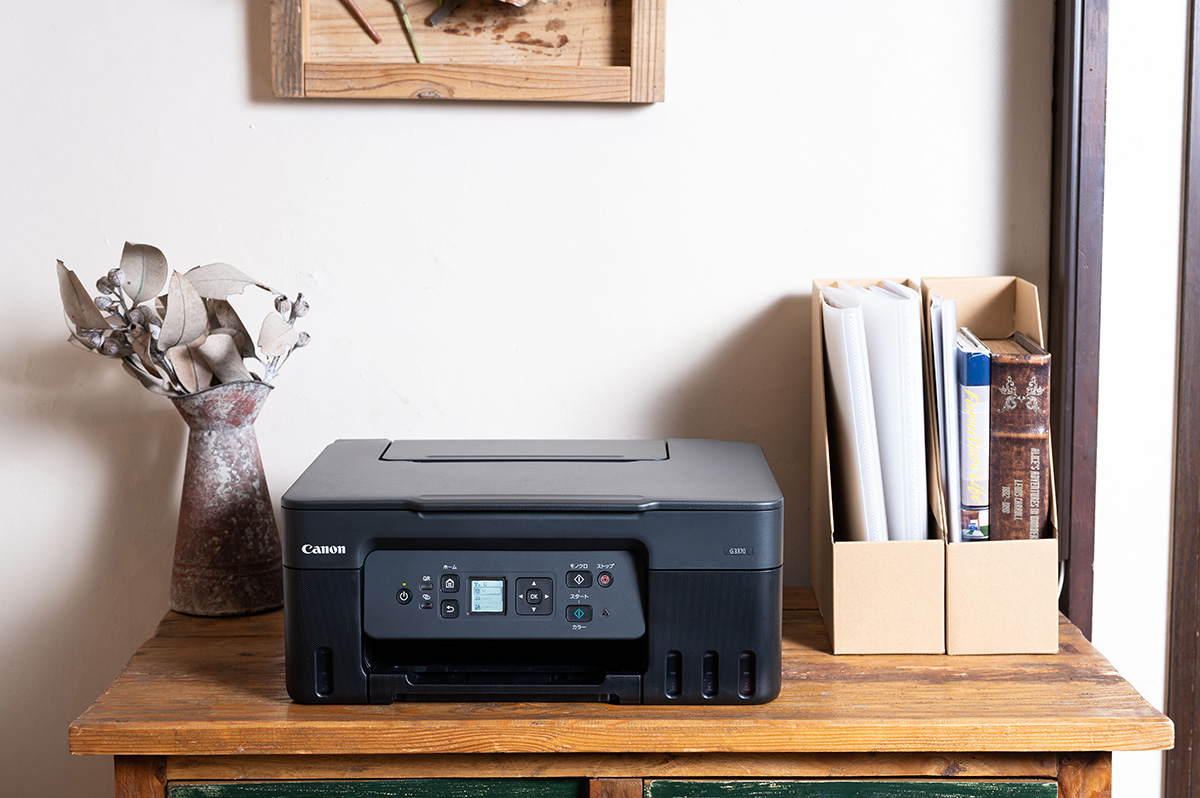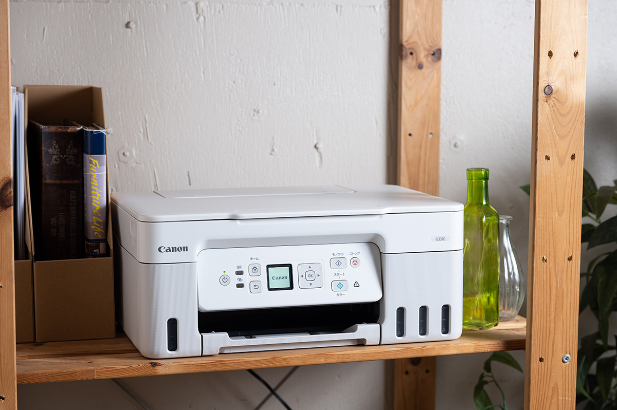 そんなプリンターの新製品として、この時期に発売されたのがキヤノンの「G3370」です。本機は3万円前後の手軽な価格でありながら、スマホ連携など多彩な機能を搭載。さらに、ランニングコストの低さや優れたメンテナンス性など、見どころの多いエントリーモデルです。