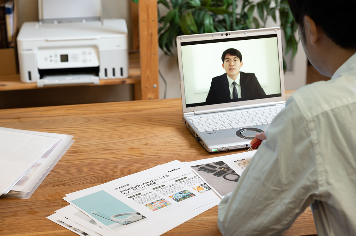「G3370を使い始めてからは、手元には資料、パソコンは会議画面を固定するようになったため、いちいち画面を切り替えることなく、会議に集中できるように。これが実にラク! いままでチマチマとクリックして画面を行き来していたのはなんと無駄だったのかと思いました。それと、画面で共有される文字は小っちゃい! 見づらくて目も疲れると感じていたのですが、紙の資料はそれも解決。しかもメモも取りやすいと感じました」(Nさん)