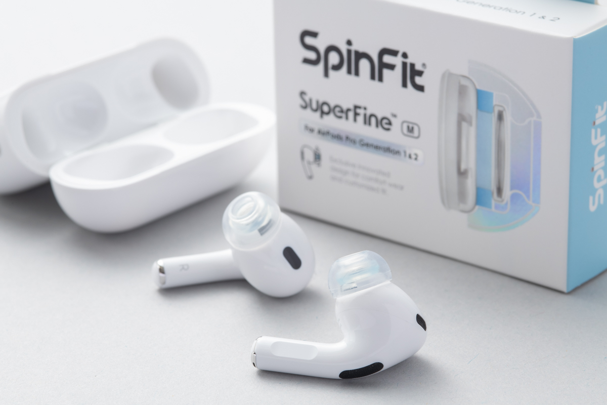 ポータブルオーディオ業界では、数年前から交換イヤーピースで装着感や音質を自分好みにカスタマイズするのが流行りとなっています。なかでも、実売価格1980円(税込)と手ごろな価格ながら、装着感や遮音性向上に役立ち、さらに音質変化も楽しめるSpinFit SuperFineは、初めてイヤーピース交換を試してみたいと考えている方に最適な製品と言えるでしょう。また、SpinFitシリーズには、AirPods Pro用以外にも数多くの製品をラインナップしているので、複数のイヤホンを所有している方は、そちらも試してみてください。