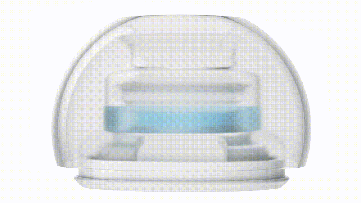 ちなみに、SpinFit SuperFineのアダプター部は新設計となっており、以前のものと比べて透明感のあるデザインになっています。また、底部分の内輪はポリカーボネイトと熱可塑性エラストマーを使い、AirPods Proにしっかり装着できるツメ構造を採用しています。