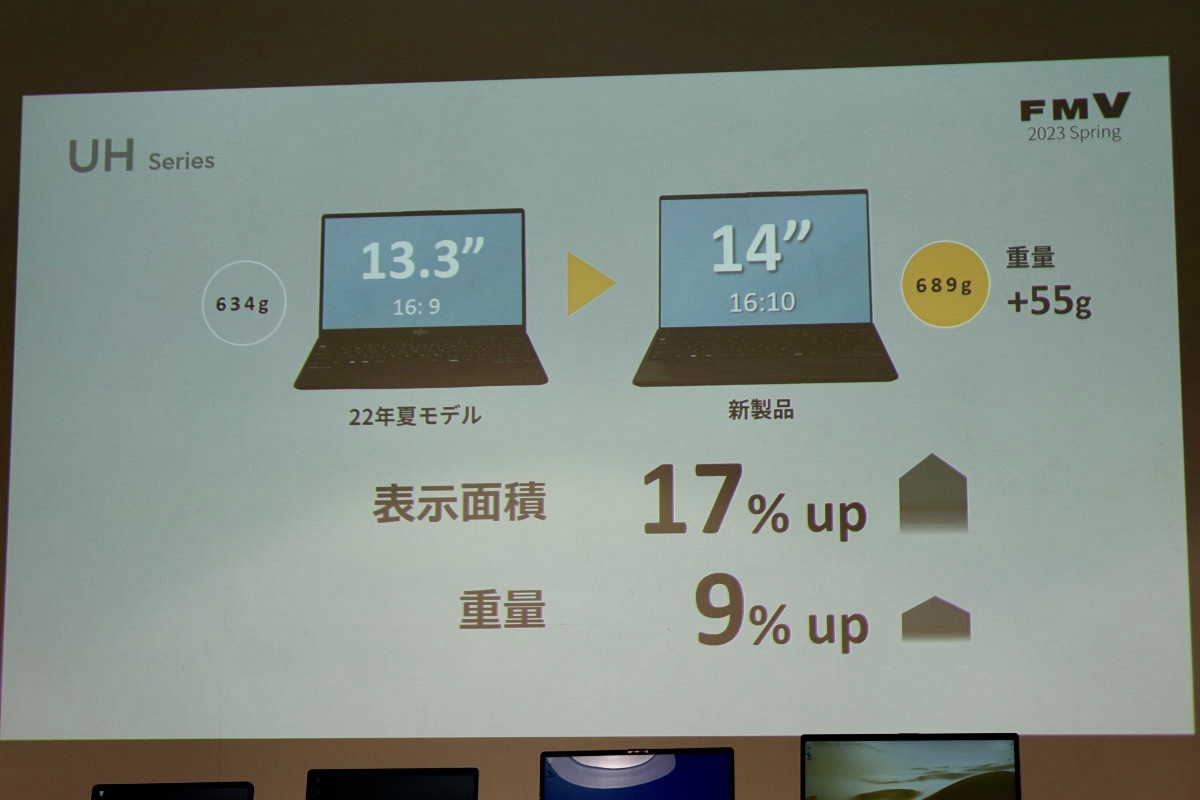 富士通クライアントコンピューティング(FCCL)は、14.0型にサイズアップした世界最軽量モバイルノートPC FMV「UHシリーズ」など4シリーズ8機種を、1月27日から順次発売します。