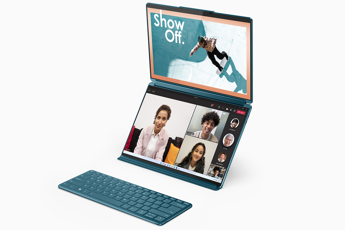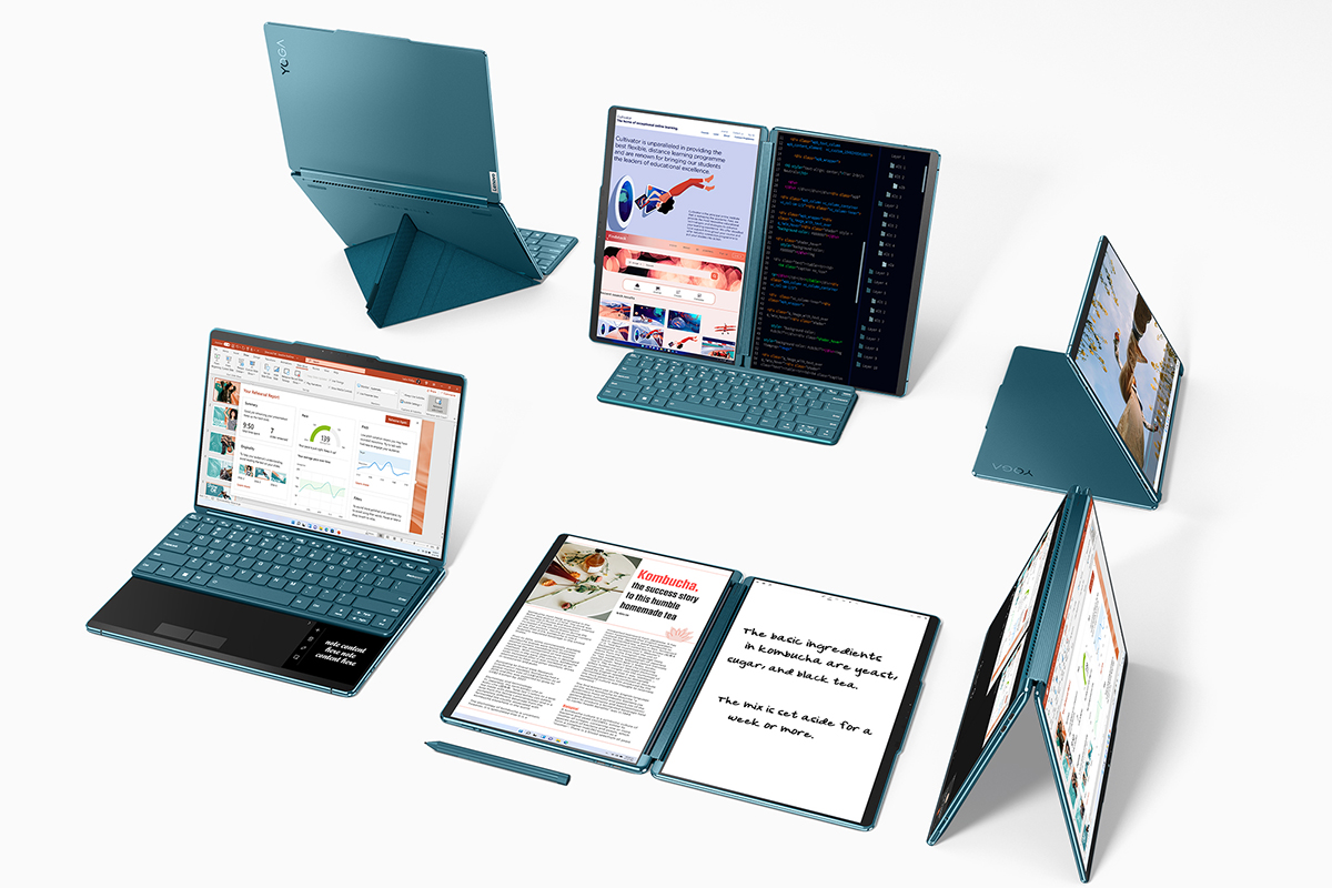 LenovoのYogaシリーズではこれまでも折りたたみディスプレイを備えた「ThinkPad X1 Fold」など、形状自在な製品が発表されています。Yoga Book 9iは折りたたみディスプレイではなく2画面によって、同じような機能性をより実用的な価格で実現する製品となりそうです。