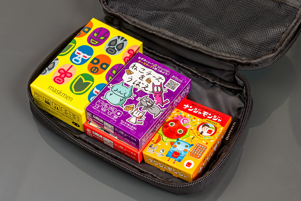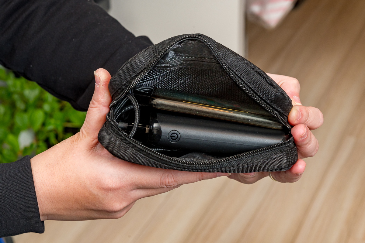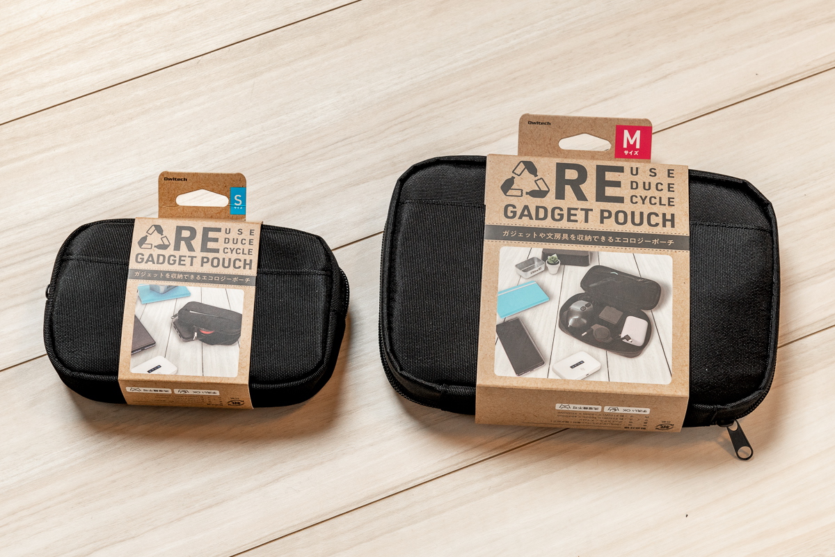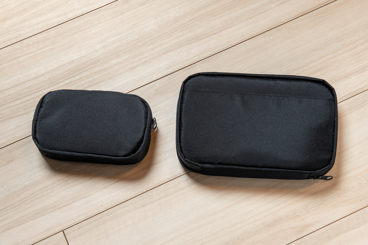 Sサイズは上述のAC充電器・モバイルバッテリー・ケーブルの3点+αを収納したいときに、Mサイズはそれよりも大きいガジェット、例えばマウスやモバイルルーターも、一緒に収納できます。