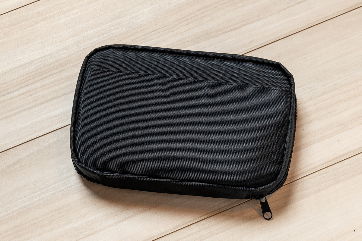 オウルテック「OWL-PCH01」シリーズは、回収PET素材でつくられたサステナブルなガジェットポーチ。ブラック一色で、外側に「オウルテック(Owltech)」のロゴなども入っていない、シンプルで使いやすいデザインが特徴です。