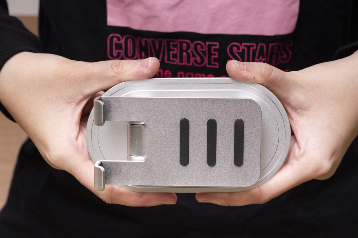 「既存のアルミスタンドが好調のため、ワンランク上のスタンドを展開することにしました。台座部分を楕円形にすることで、コンパクトさを追求しています」(オウルテック担当者)