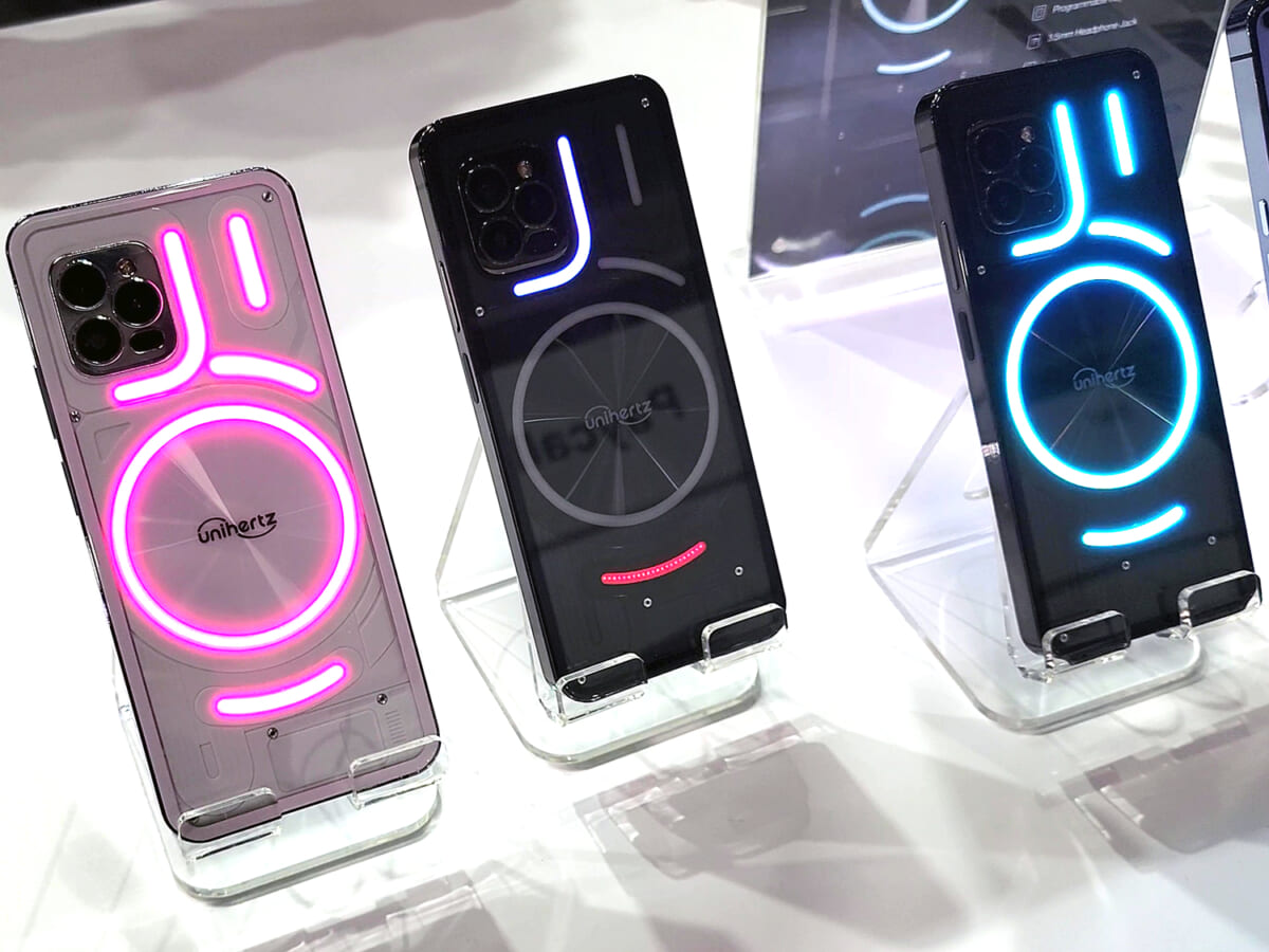 ちなみにMWCのUnihertzブースにはNothingのCEO、カール・ペイ氏が訪問して自分のNothing Phone (1)とLunaを比べてみたとか。Lunaには実はホワイトライトだけのバージョンもあって、Nothing Phone (1)を正しくトレースしたモデルも出しているほど。Lunaはカメラも1億800万画素と3200万画素で、Nothing Phone (1)のデュアル5000万画素よりちょっとだけ高性能。しかし通信方式はLTEのみ、本体重量もかなり重くてたぶん300gくらいあります。果たしてこの「光るスマホ」、正式発売後はどれくらいの人気になるでしょうか?