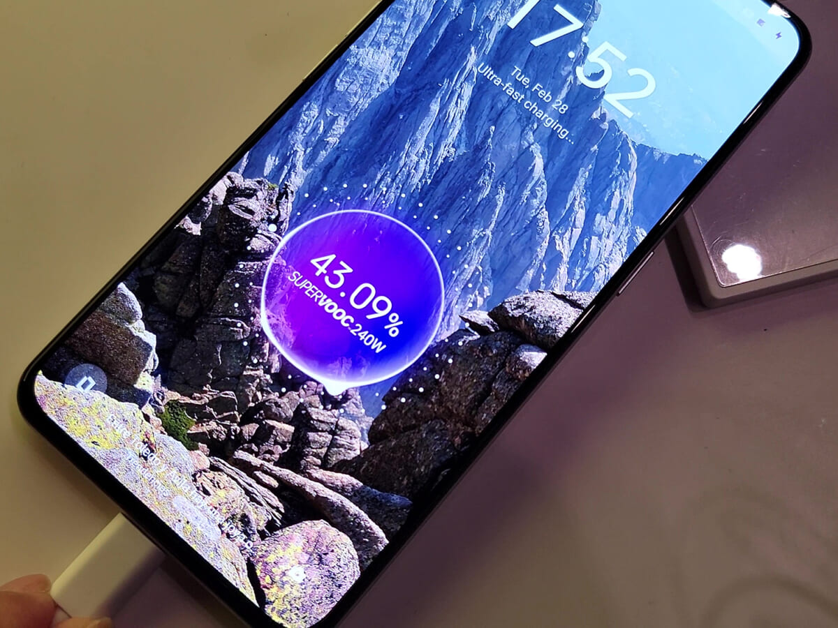 スマートフォンの充電速度は年々高速化が進んでいます。日本ではシャオミが「神ジューデン」と名付けた高速充電スマートフォン「Xiaomi 12T Pro」を販売していますが、realmeが発表した「GT3」の充電速度はその「神」を超える速度です。世界最速の240Wの充電に対応し、満充電に必要な時間はわずか9分半。もはやスマートフォンの充電は10分以内で終わらせることができるのです。