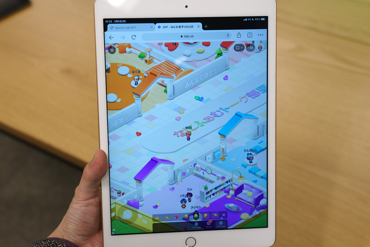 このうちZEPは、韓国で2022年に開発されたメタバースで、日本での展開がほぼ初の海外進出となるサービスです。メタバースとは言っても、2Dの箱庭ゲームのような見た目で、メタバース空間内で近くにいる人と音声チャットをしたり、ビデオ通話をつないだりする機能を備えています。