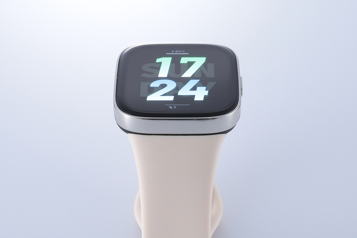 標準搭載されているウォッチフェイスは6種類だが、200種類以上のウォッチフェイスが用意されており、スマートフォンアプリ経由でダウンロードできる。着る服の雰囲気に合わせてウォッチフェイスを変更すれば、コーディネートの一部として、腕元を華やかに彩ってくれる。ウォッチフェイスごとに、カラーリングや表示させるデータの変更が可能で、カスタマイズ性も十分だ。