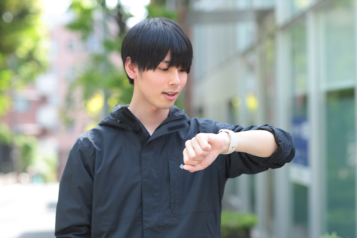 大型ディスプレイを搭載しながら、薄くて軽いボディに仕上げており、軽快な装着感が得られる。ケース厚が薄いため、シャツの袖口に引っかかることもない。