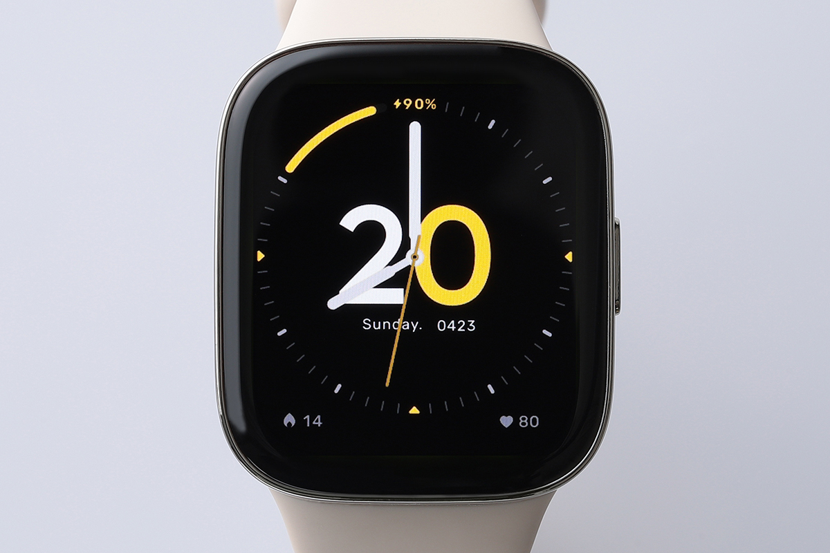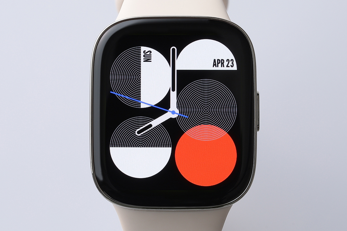 まずは、スマートウォッチの基本とも言える文字盤の視認性について確認していこう。文字盤には、大型でクリアな1.75インチのAMOLEDディスプレイを搭載。ピーク輝度が600nitsと高く、直射日光下でも鮮明な表示で各種情報を確認できる。