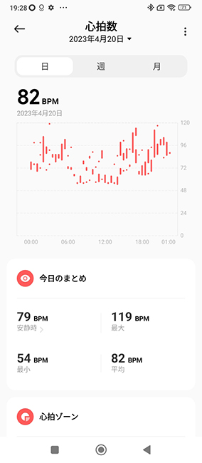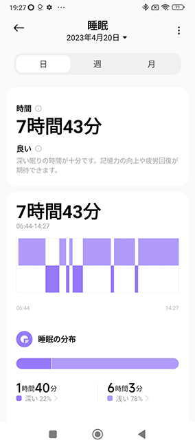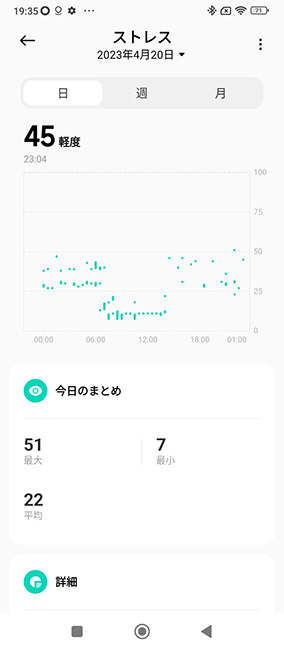 充実したヘルスケア機能も見逃せない。血中酸素モニタリング、心拍数モニタリング、睡眠モニタリング、ストレスレベルモニタリング機能などを備え、健康状態を可視化して把握できるため、健康管理がしやすい。起床時や仕事の休憩時間などに、健康状態を確認する習慣が自然と身に着き、健康的な生活を心掛けるモチベーションが高まった。