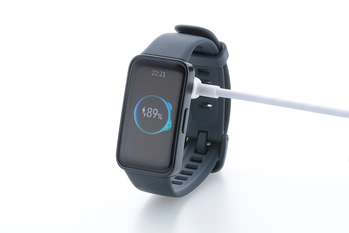 バッテリーは、ヘビーユースで約9日間、通常使用で約14日間と長く、24時間の健康モニタリング機能のログを継続的に記録できる。「充電が面倒で……」と、スマートウォッチを着用しなくなる人は多いが、最長約2週間のロングライフバッテリーを実現した本機なら、日々の充電の煩わしはほとんどない。約5分間の充電で約2日間の使用が可能になる、急速充電にも対応しているのもポイントだ。