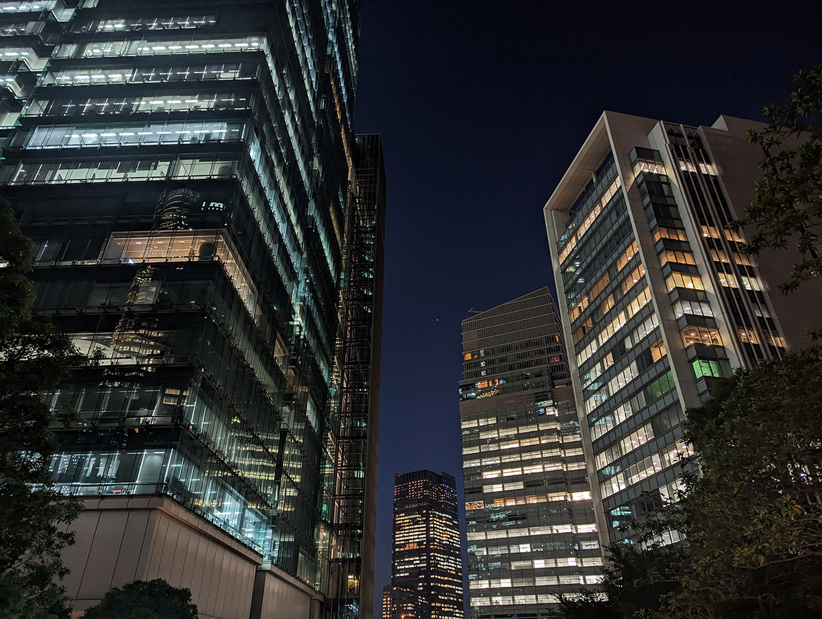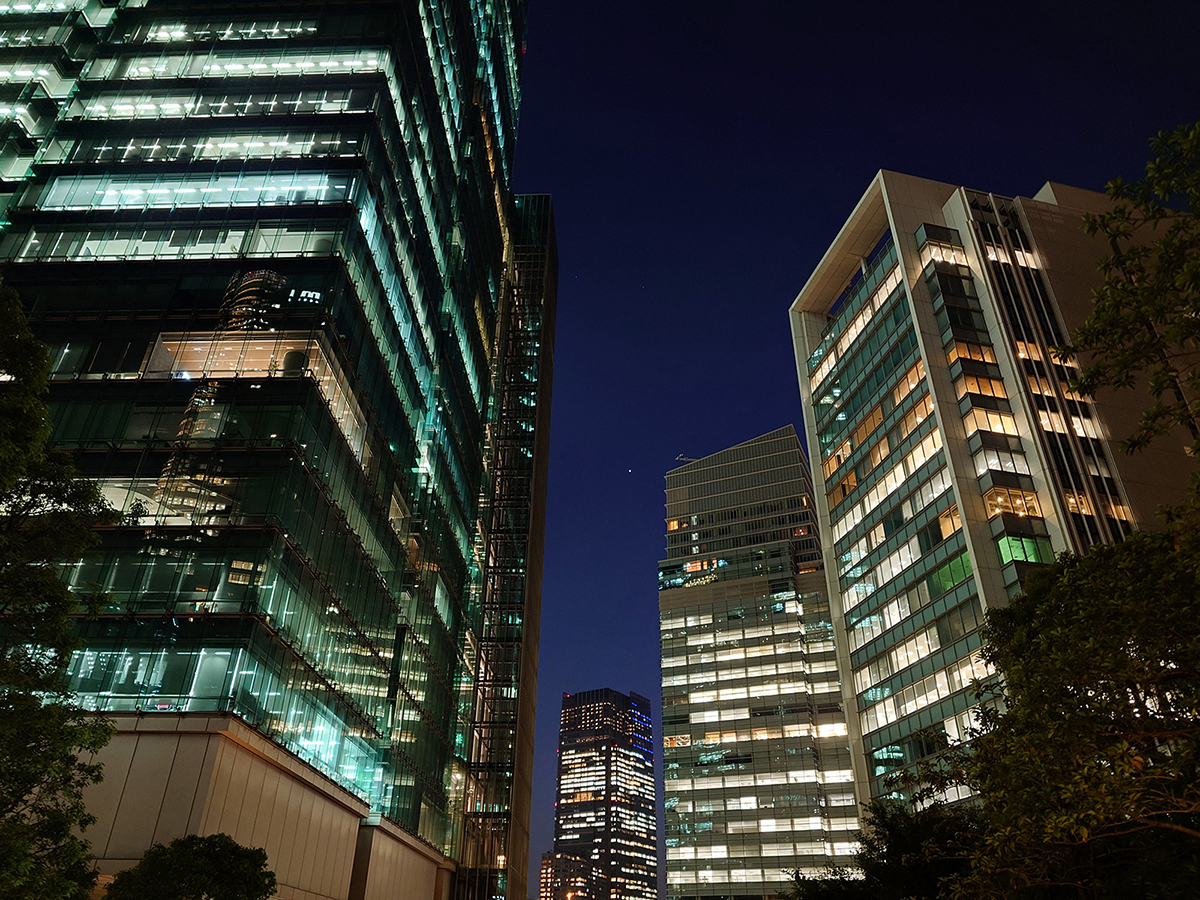 夜景はXperia 1 Vの優秀さが際立つ被写体です。暗部を引き締めつつ、明るい箇所は色彩を豊かに引き出します。ビルの窓枠など、被写体の輪郭がとてもシャープな線で描かれるところもXperia 1シリーズの特徴です。