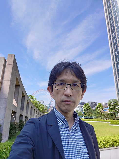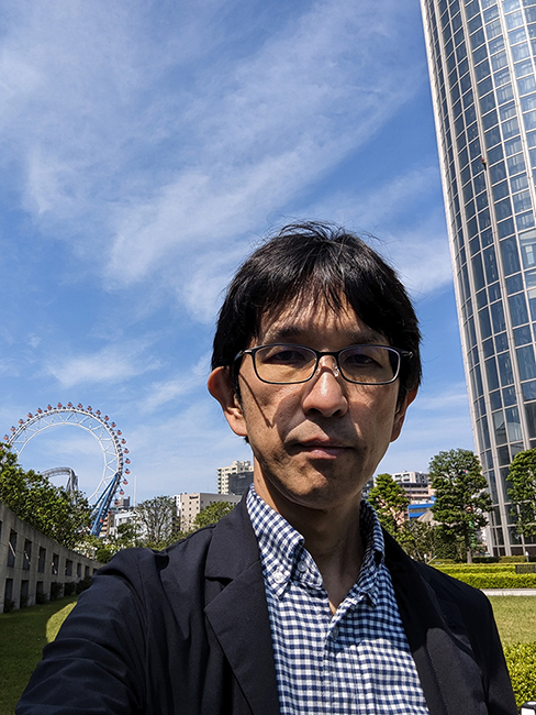 被写体が私で恐縮ですが、Xperia 1 Vのインカメラで撮影したセルフィです。Xperia 1 Vでは顔に影が落ちない、明るい写真が撮れました。同じ場所と時刻にPixel 7で撮影したセルフィと見比べてみると、出来映えにかなりの差が出ていることがわかります。