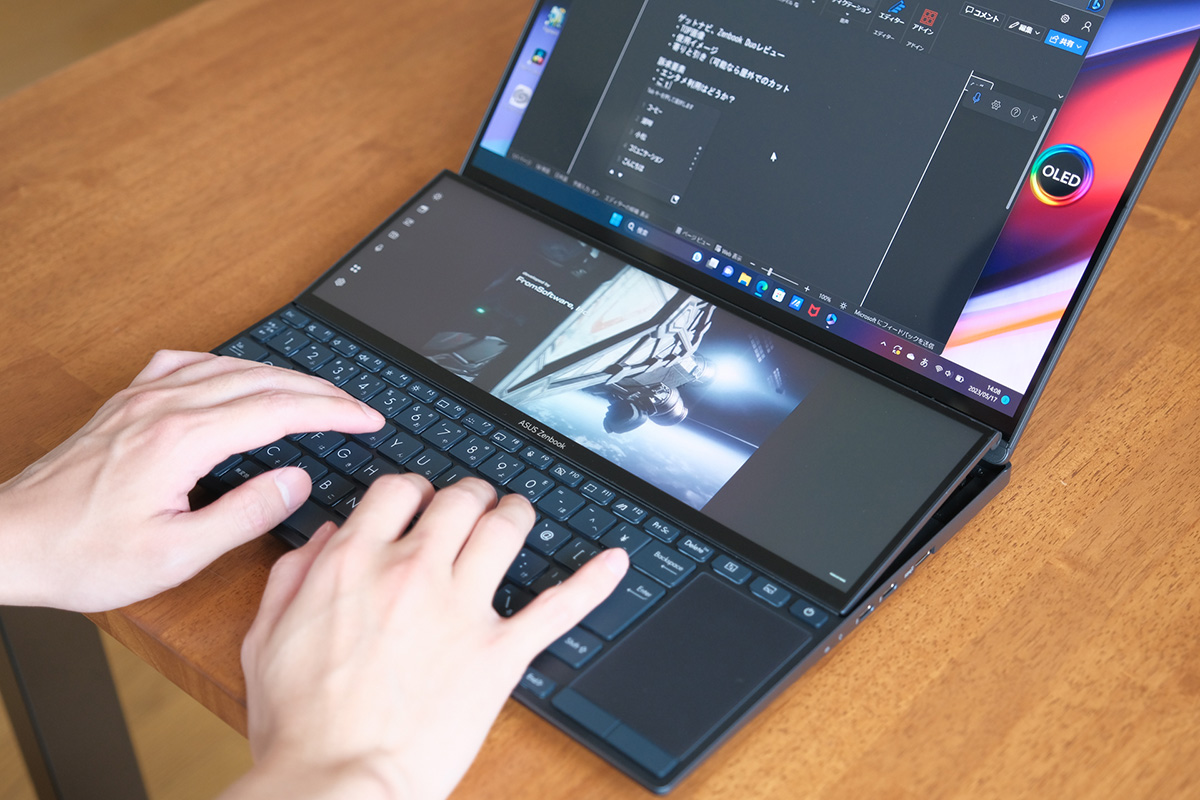 2画面ノートの歴史はまだまだ黎明期。Zenbook Pro 14 Duo OLEDなら、モバイルディスプレイやタブレットいらずでマルチディスプレイ環境が構築できます。この贅沢な環境、あなたならどう使いこなしますか?