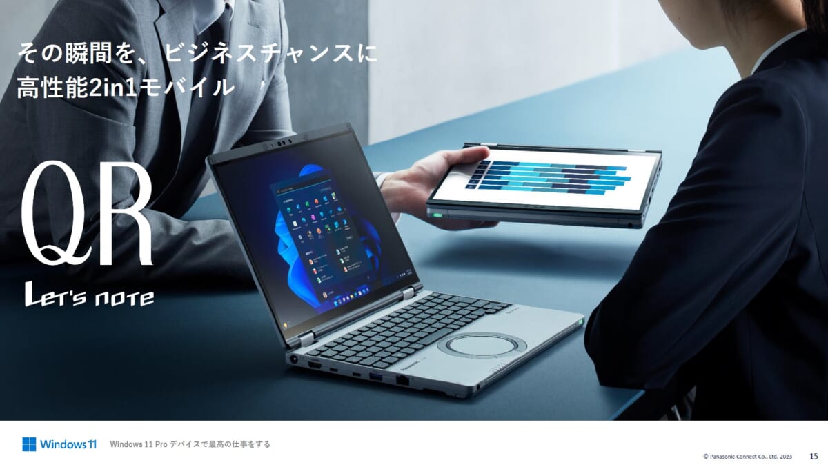 パナソニック コネクトは6月6日、モバイルノートパソコン「レッツノート」の新モデル「QR」シリーズを発表。6月16日から順次発売する。同製品はPCとタブレットの機能を1台に集約した2in1モデルとして展開予定。店頭での予想実勢価格は34万円(税込)、パナソニック ストア プラスにおける販売価格は34万3200円(税込)から。同サイトでは6月6日から予約受付が開始されている。