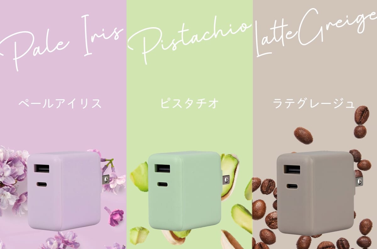 また、PD対応のAC充電器「MOT-ACPD30WU1」(2948円・税込)は、USB-CポートとUSB-Aポートを搭載した、2ポート同時充電可能の充電器。USB-CポートはPD30W出力対応で、スマホやタブレット、ノートパソコンにも充電ができる。USB-Aポートは18Wの出力に対応。2つのポートを同時使用した場合は、最大15Wの出力となっている。カラーはラテグレージュ、ピスタチオ、ペールアイリスの3色で、9月中旬発売予定だ。