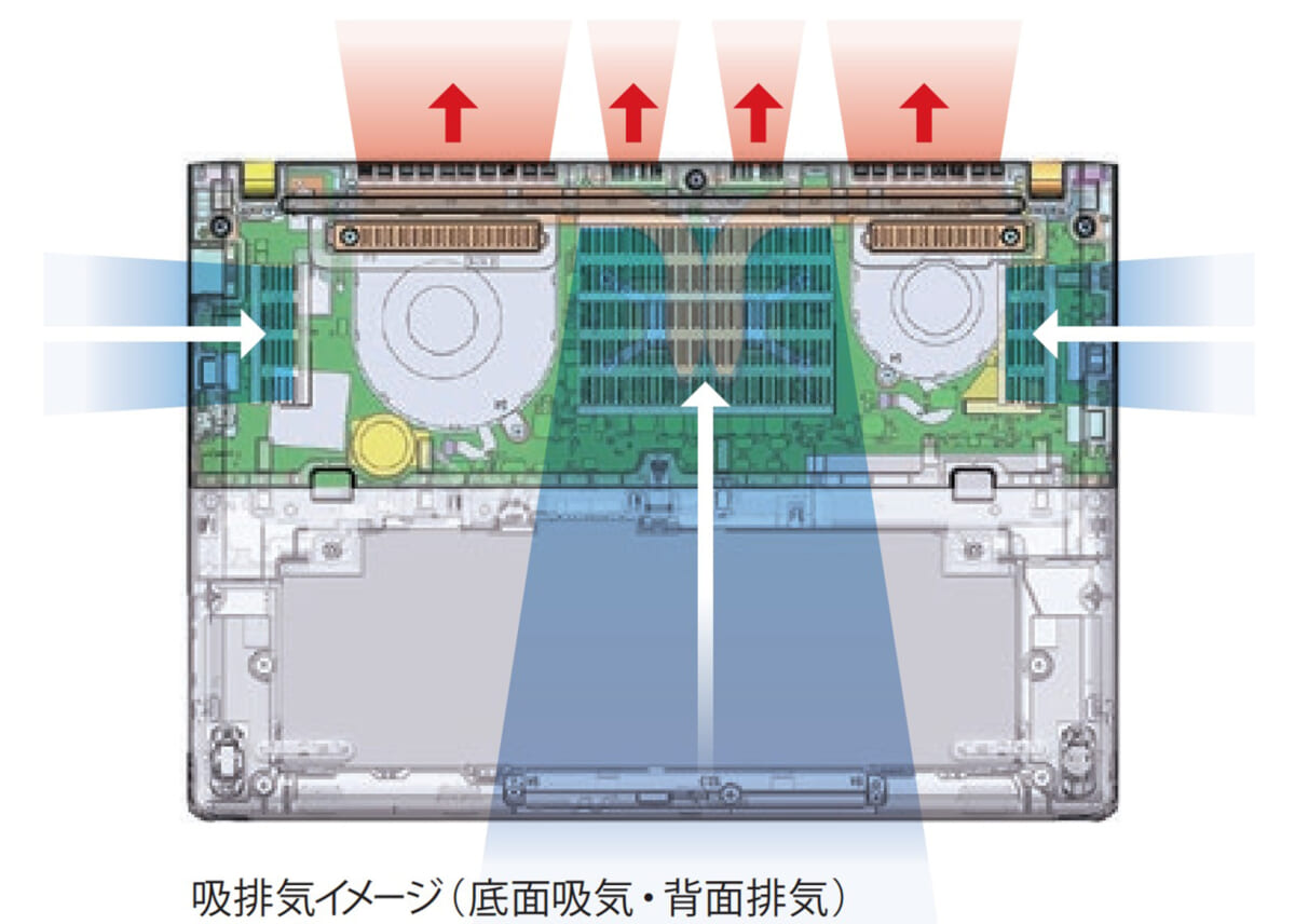パフォーマンスの最大化においては、素早い起動と優れた応答性を追求。CPUは、ハイパフォーマンスと省電力性を両立したインテルの第13世代「Core i7-1370P vPro」「Core i5-1350P vPro」「Core i7-1360P」「Core i5-1340P」「Core i5-1345U vPro」「Core i5-1334U」から選択できる。CPUのパフォーマンスを安定させる同社独自のエンパワーテクノロジーも採用。小型のダブルファンとヒートパイプを取り入れるなどによって、TDP(熱設計電力)28Wという高いパフォーマンスを維持している。