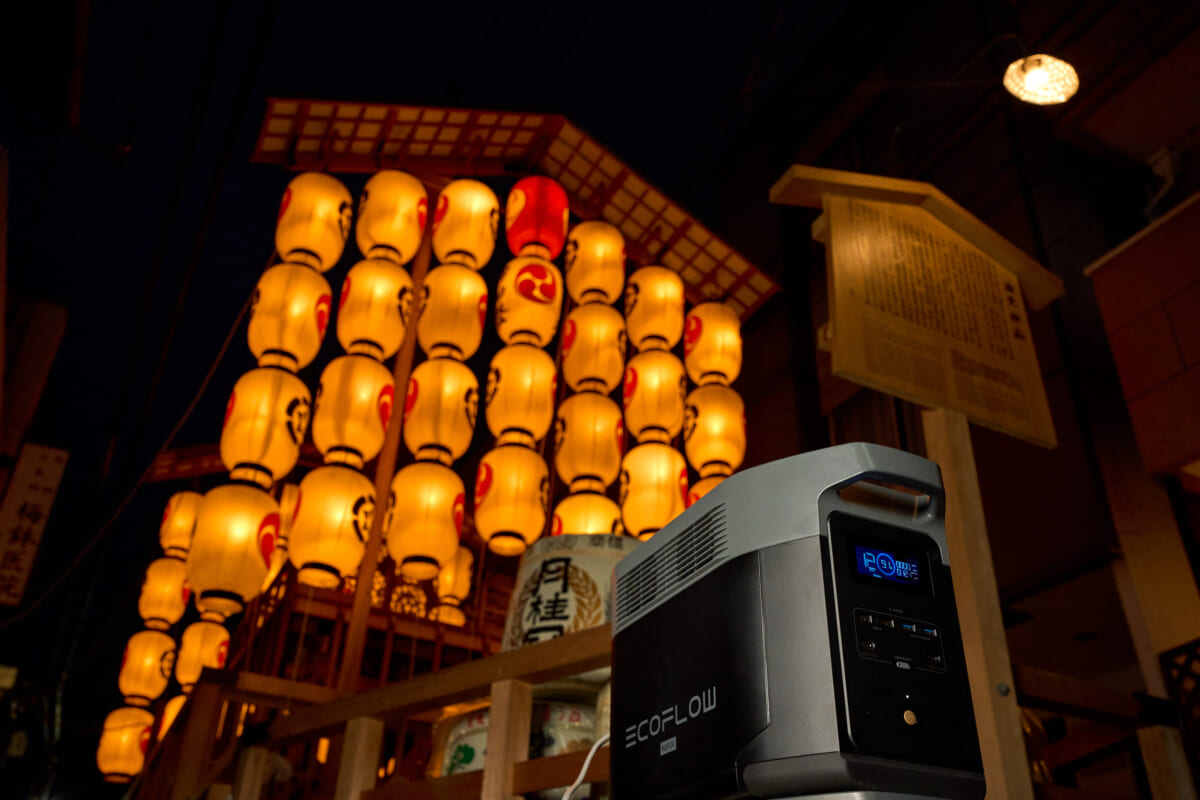 プロジェクトの一環として、祇園祭の宵山における山鉾の駒形提灯を、再生可能エネルギーを利用して点灯。EcoFlowはここに共感し、今回協力することにしたそうです。