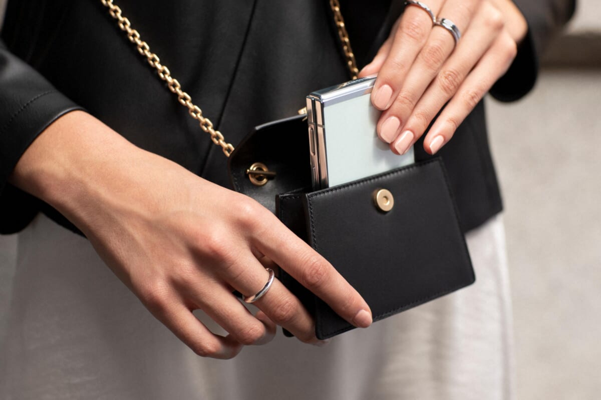 また、Galaxy Z Flip5はその形もさらにスタイリッシュなものとなっています。折りたたみ機構の改善によって、閉じたときのすき間が埋まり、まっすぐ、きれいに閉じられるようになりました。厚さは15.1mmで、前モデルのFlip4より2mm圧縮されています。