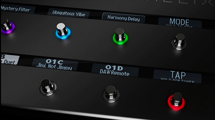 スイッチ一つ一つにディプレイが内蔵されており、演奏中でも直感的な操作が出来るほか、演奏者の好みでエフェクト等を配置することができます。