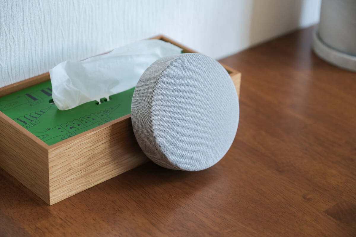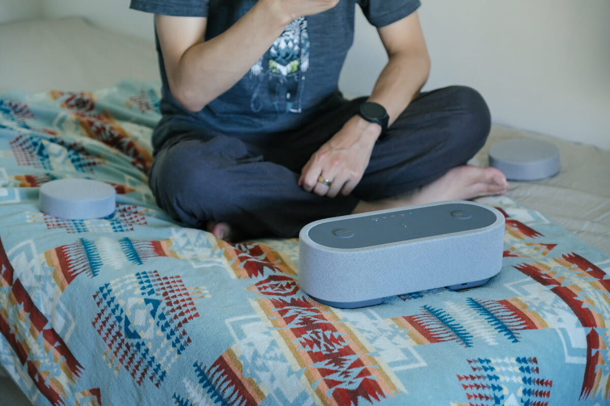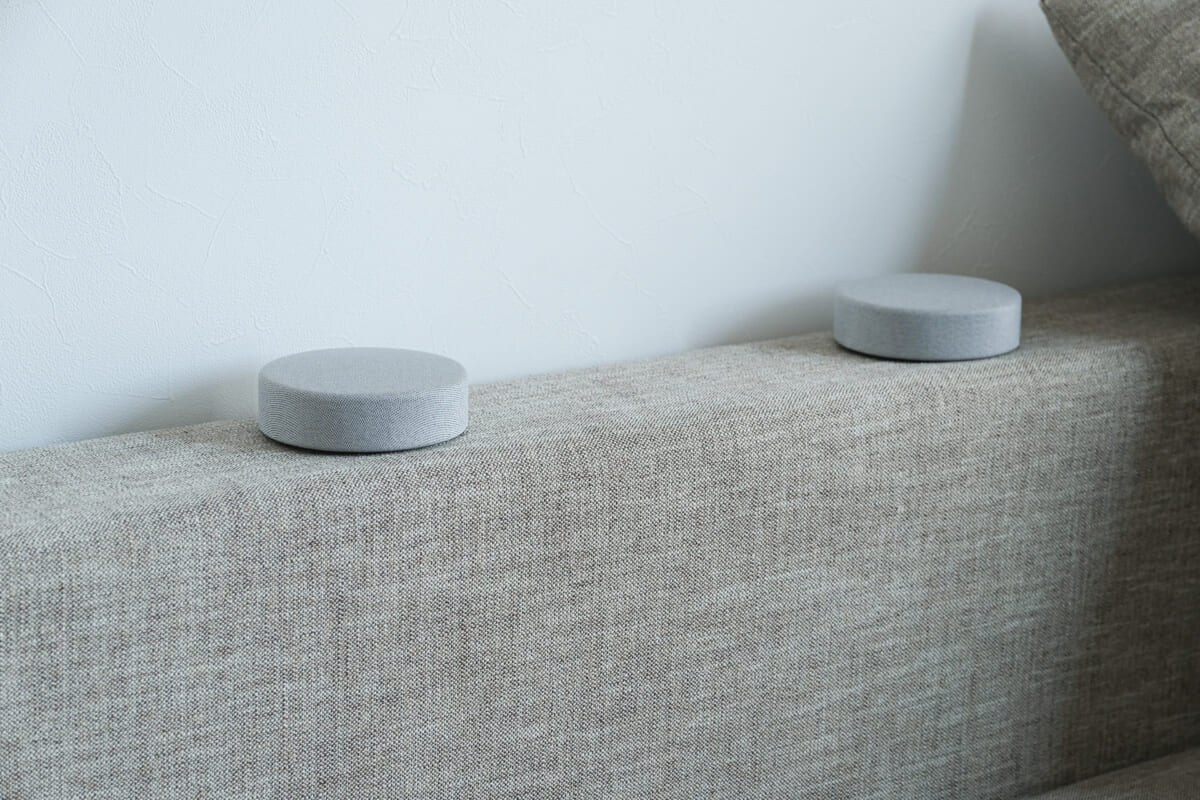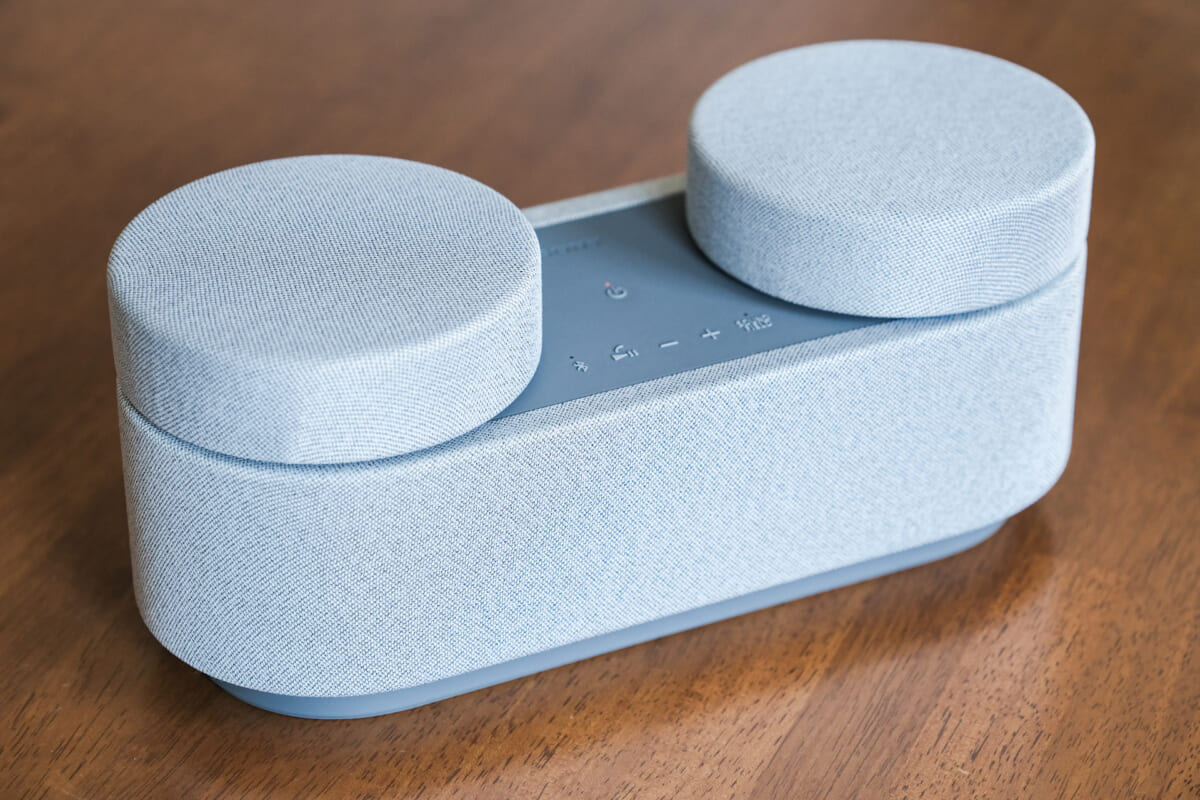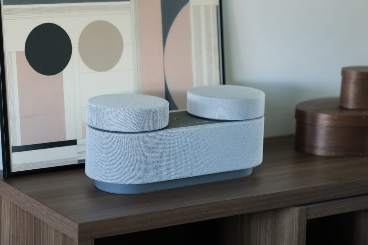 フロントもリアスピーカーも、同色のファブリック素材で覆われています。ガジェット感が抑えられており、モダンなインテリアのようにも見えますね。