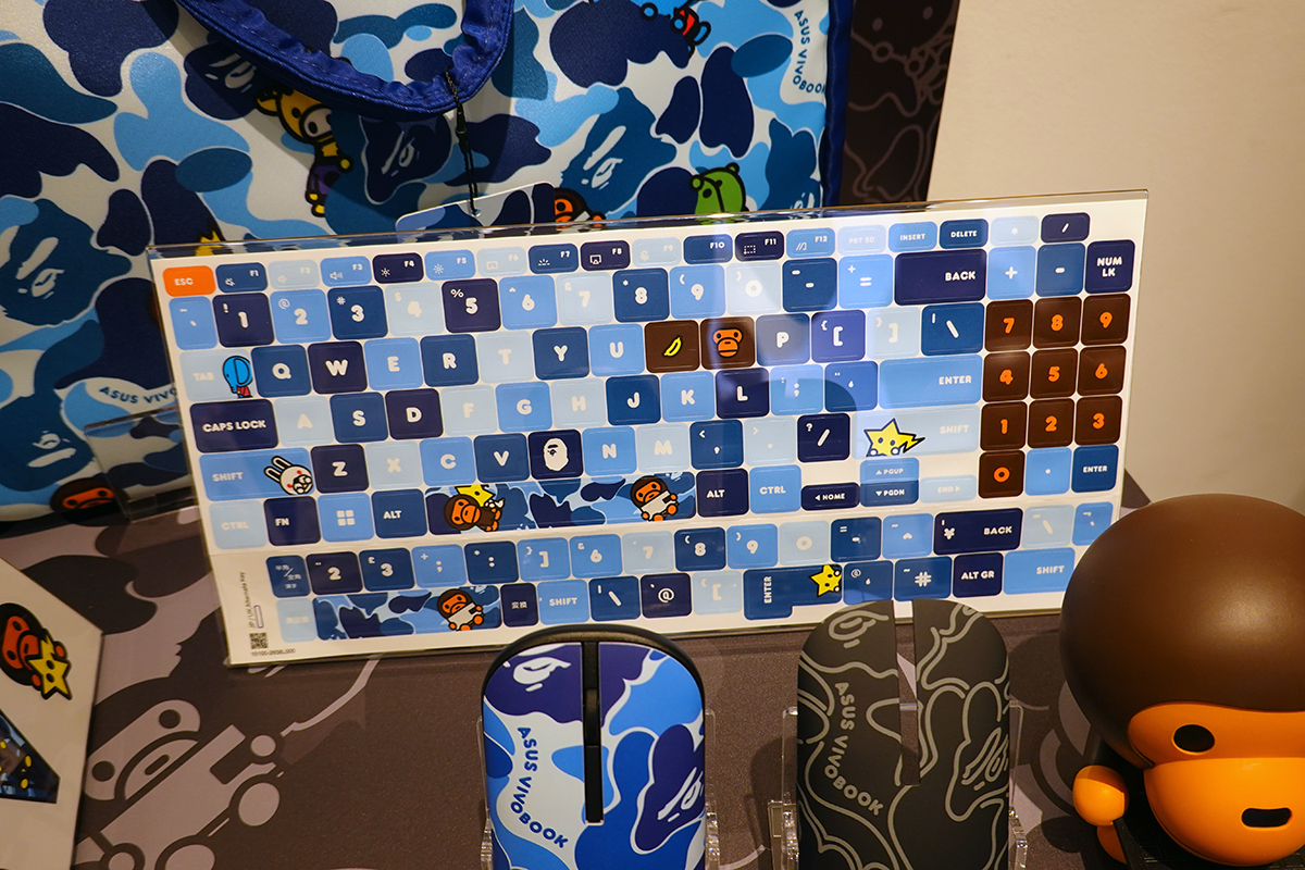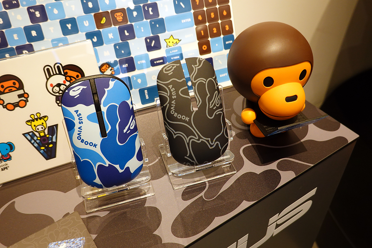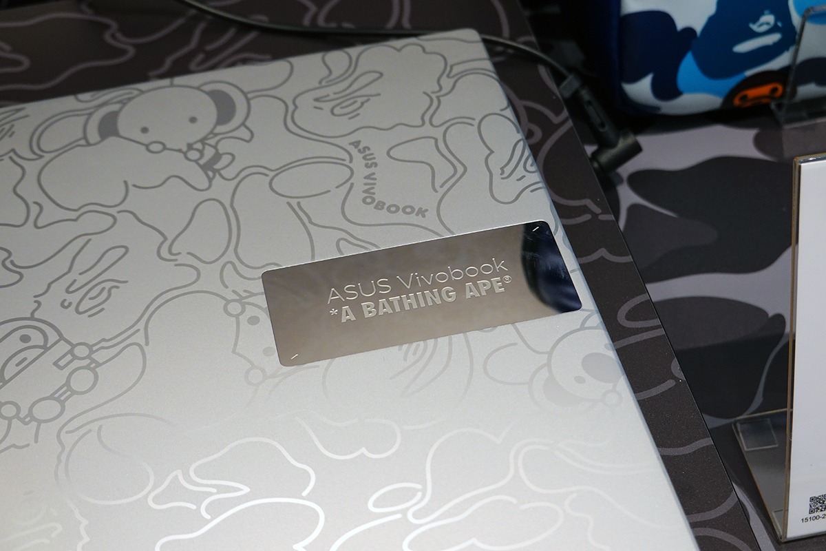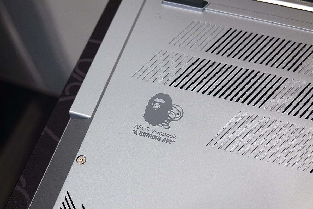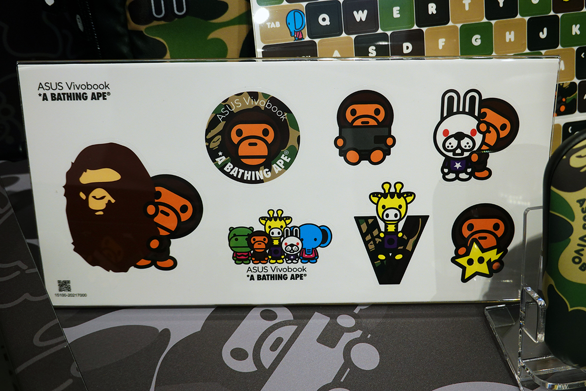 Vivobookコラボモデルは、本体はもちろん、液晶の壁紙やアクセサリーも特別にデザインされた製品です。Vivobookとしては初めてファッションブランドとコラボしたモデルであり、A BATHING APEもPCとコラボしたのは初だといいます。