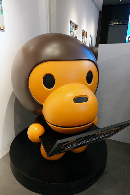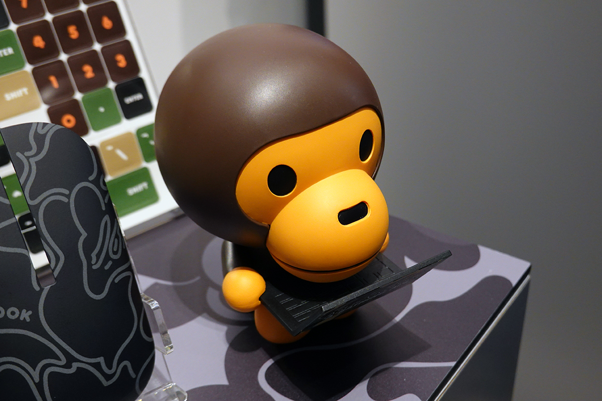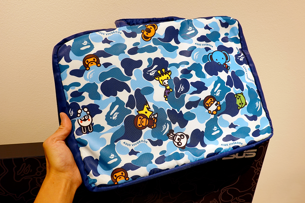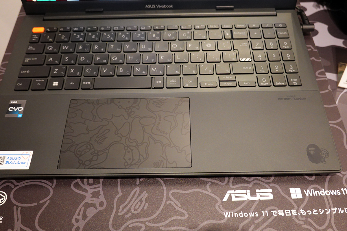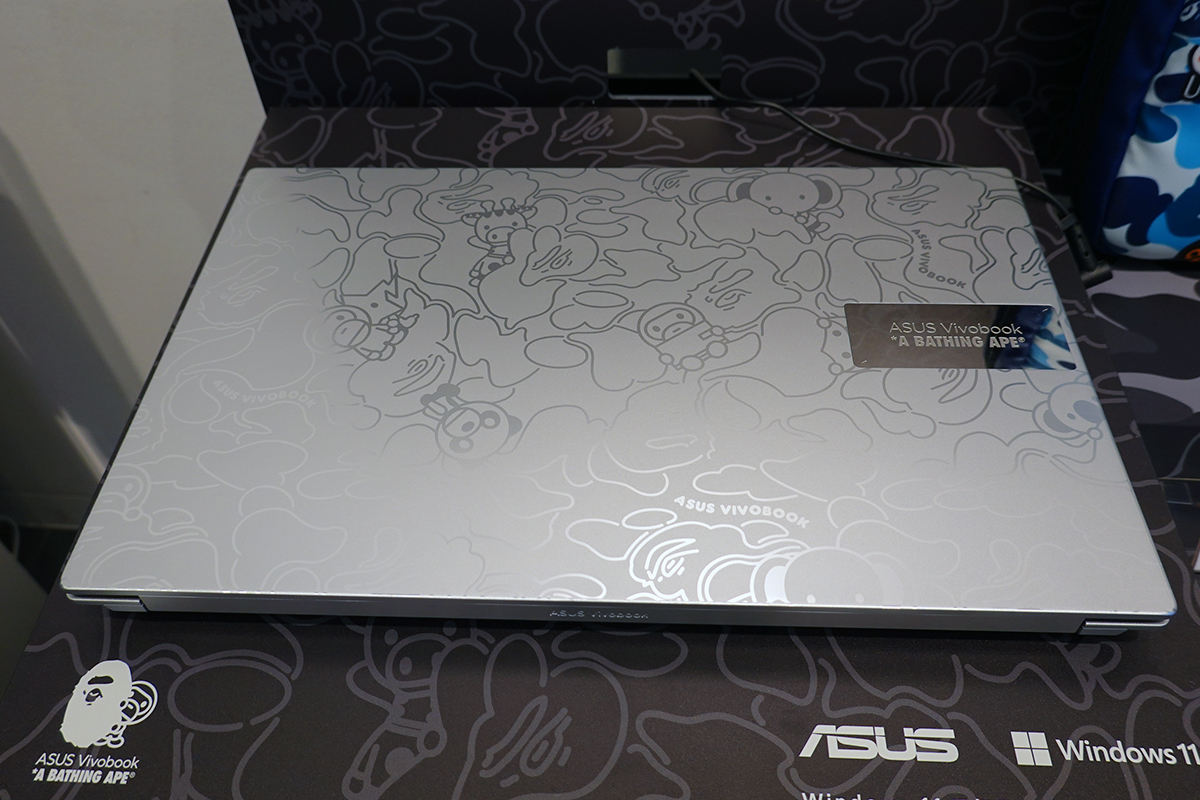 Vivobookコラボモデルは、本体はもちろん、液晶の壁紙やアクセサリーも特別にデザインされた製品です。Vivobookとしては初めてファッションブランドとコラボしたモデルであり、A BATHING APEもPCとコラボしたのは初だといいます。
