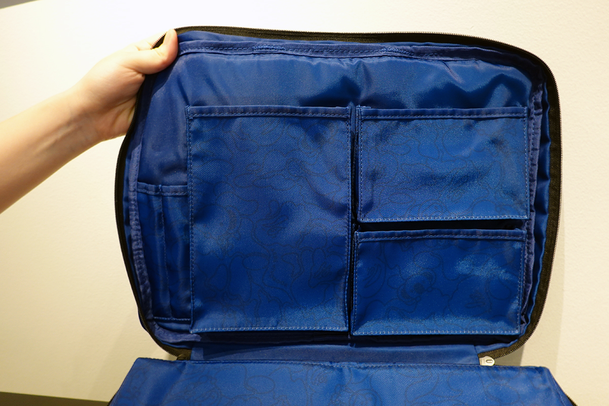 さらに、キャリーバッグも付属します。Vivobookコラボモデル本体やワイヤレスマウス、ACアダプターはもちろん、カギやワイヤレスイヤホン、ペンなどを収納するスペースも確保しています。キャリーバッグ自体もノートPC本体のカラーに合わせてグリーンカモ、ブルーカモが同梱されます。