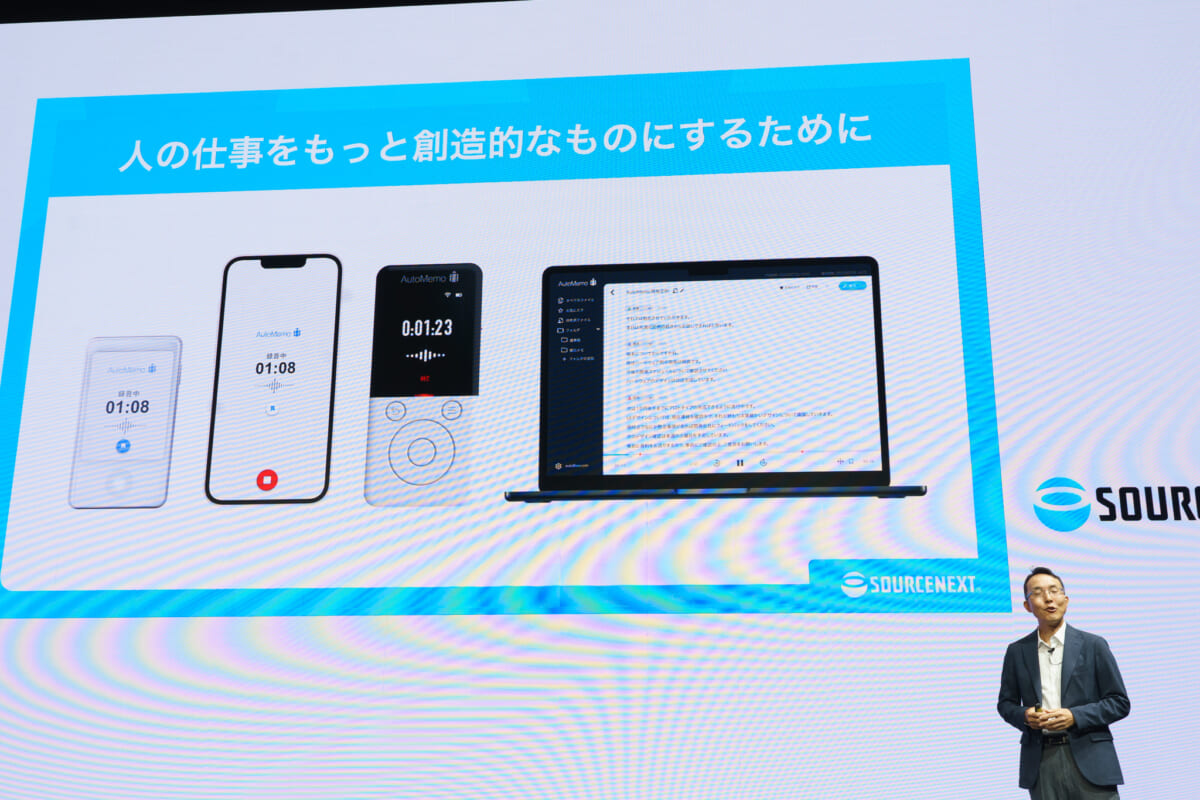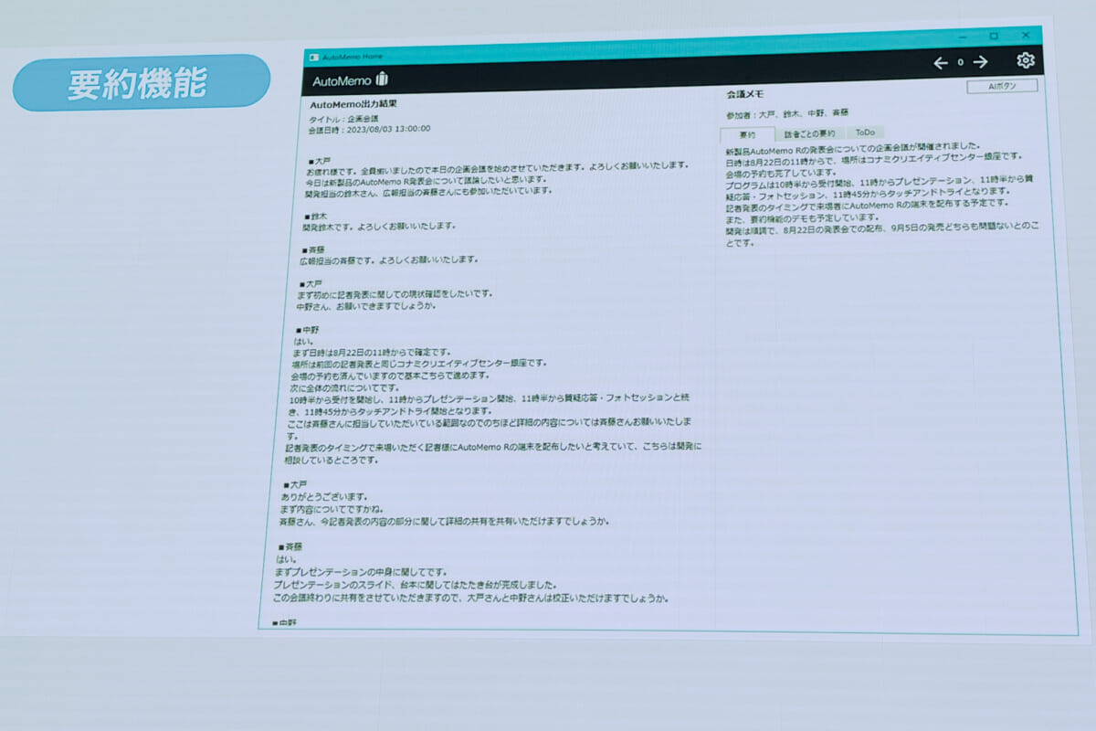 ソースネクストが8月22日に開催したオートメモ Rの発表会では、オートメモシリーズの今後の展開についても紹介されました。注目はAutoMemo Homeで実装予定の「議事録の自動作成機能」です。
