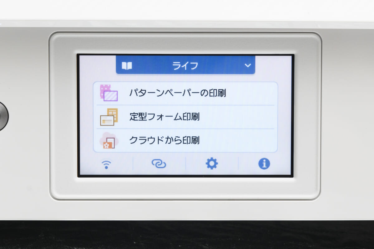 ソフトウェアの面でも、操作性を向上させる仕組みが取り入れられています。それが、「Switch UI」です。たとえば仕事でコピーやスキャンなど使う場合は「仕事」用。A罫やB罫のレポート用紙を印刷できる「学習」用。アルバムの台紙やランチョンマットに使用できるパターンペーパー印刷などの「ライフ」用。といった具合に、複数のUIを作成できるのです。
