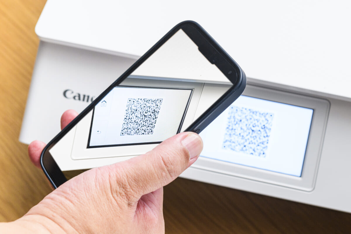 スマホとプリンターを一時的に接続したいときには、「QRコードダイレクト接続」が便利。プリンターの画面に表示されたQRコードをスマホから読み取るだけで簡単に接続できます。