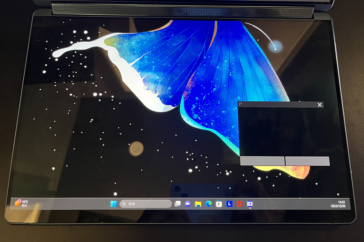 Yoga Book 9i Gen 8は、一般的なノートPCのキーボード部も全面ディスプレイにした、2画面ノートPCです。2つのディスプレイは有機ELなうえに13.3型のマルチタッチ対応で、解像度は1画面あたり2880×1800ドット、400nitの明るさを実現しています。