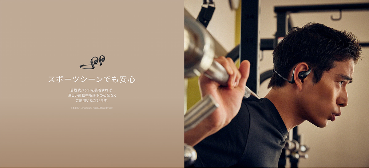 なお Soundcore AeroFitの上位機種として発売されている「Soundcore AeroFit Pro」は着脱式のバンドが付属してくるため、ジムでのワークアウトやランニングなどの激しい運動をともなう際でもしっかりとホールドしてくれます。より安定した装着感を求めたい方は、こちらも候補としてあげてみてはいかがでしょうか。
