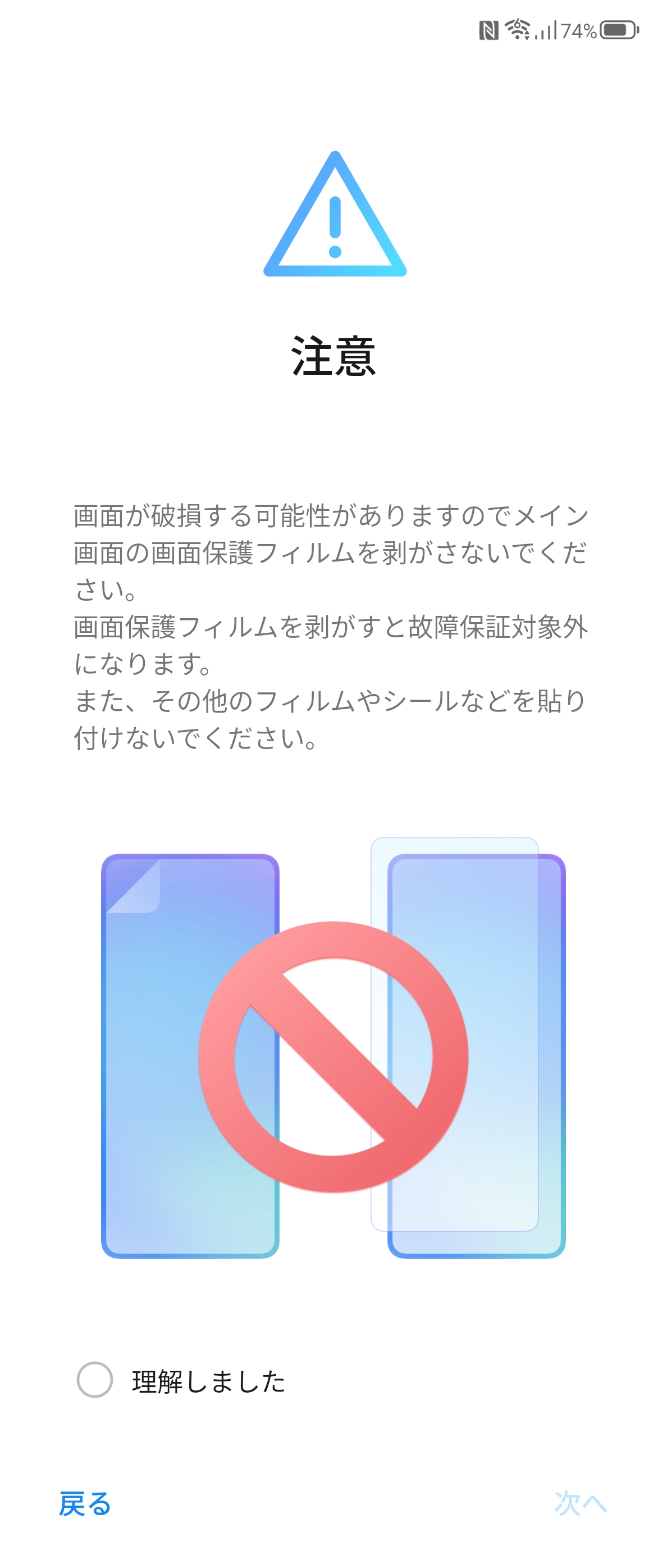 また折りたたみならではの注意点としては、保護フィルムははがせません。