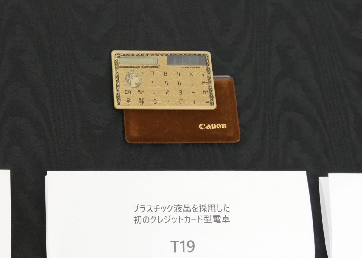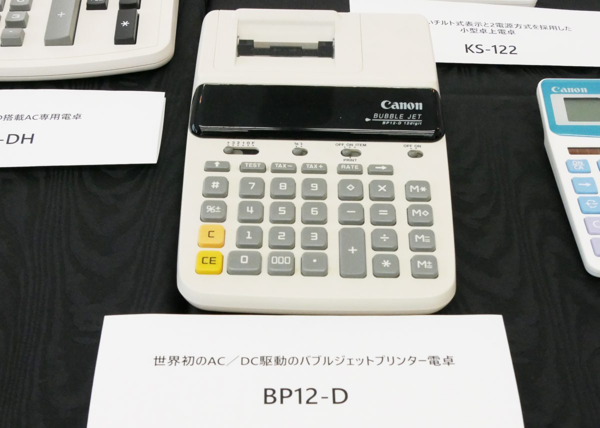 この度、60周年を迎えるにあたり、キヤノン電卓の変遷を紹介するメディア向け説明会がキヤノンマーケティングジャパンの本社で実施された。時代の移り変わりと共に変化し続けてきたキヤノンの電卓には、一体どんな機種があったのだろうか? 会場には、千万単位機能電卓やカード型電卓、マウス・テンキーと一体化したパソコン連携型の電卓など、往年の機種がズラリと並んでいた。早速、キヤノン電卓60年のレガシーを紹介しよう。