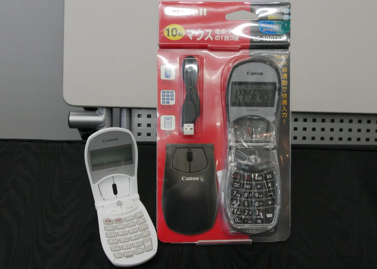 そんな数あるユニークな電卓の中でもひと際目を引いたのが、2008年発売のマウス型電卓「LS-100TKM」だ。折りたたみ式ボディをパカッと開くと電卓が出て来る特異なデザインで、電卓・テンキー・マウス計3つの機能を搭載。本体を閉じたまま使用すればマウスに、開けばテンキー電卓として使用できる。こちらもパソコンとの連携が考慮されており、電卓で計算した結果をパソコンへと転送することが可能だ。