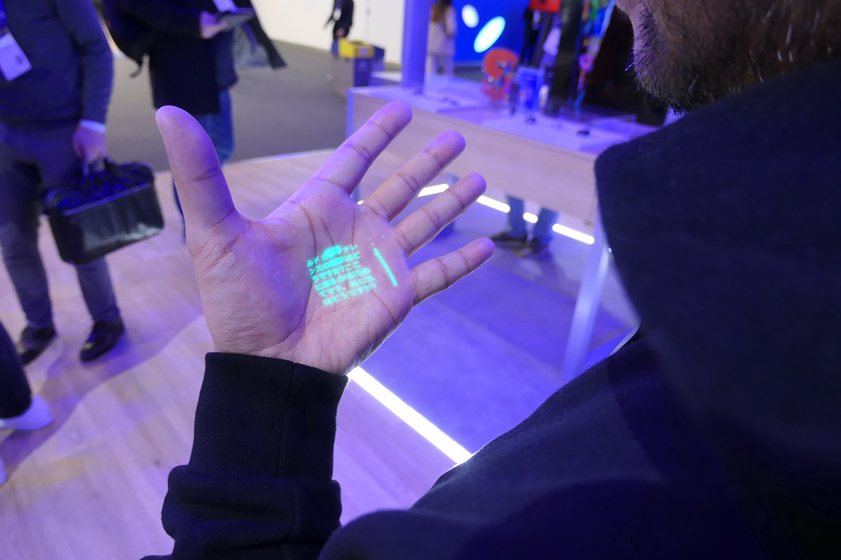 GoogleアシスタントやSiriのように、話しかけて必要な情報にアクセスすることが可能。AIにより、一問一答ではなく会話する感覚で情報を絞り込んだり、外国語を通訳したり、要約したりといったこともできるとのこと。取得した情報をプロジェクターで手のひらに投影することができ、その際、指先をくっつけたり、開いたりといったジェスチャーで、機能を切り替えることも可能。カメラで何かしらを撮影して、画像認識技術で、被写体についての情報を調べたりすることもできます。