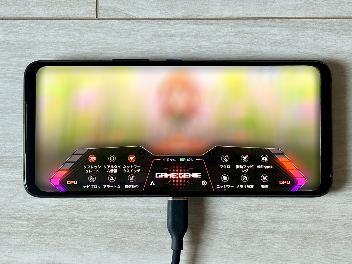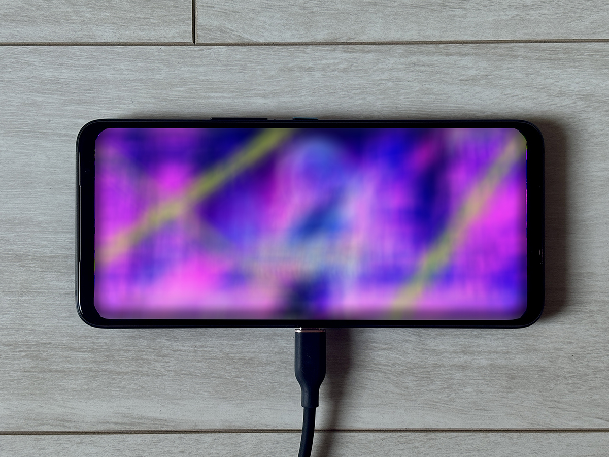 なお上記の写真は、充電ケーブルを繋ぎながらのもの。横画面でのゲームプレイが前提とされていることもあり、一般的な本体底面に加えて側面中央にもUSB Type-Cの充電ポートがあるため、プレイしながらの充電もストレスレスです。このあたりはゲーミングスマホならではの配慮が感じられます。