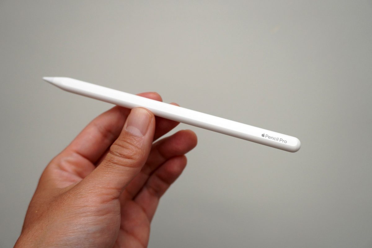 Apple Pencil Proの使い勝手も良くなりました。第2世代のApple Pencilと見た目には同じデザインでありながら、Apple Pencil Proにはさまざまな種類のセンサーが追加され、中身が大きく変わっています。にもかかわらず、ペンの重さとサイズ、重心のバランスなど手に持った感覚は何も変わっていません。