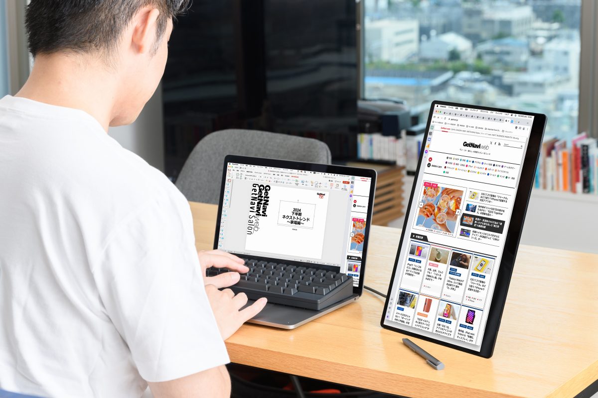 本モバイルディスプレイの特徴を簡単に紹介しておくと、圧倒的な薄型&軽量さ、タッチ対応の有機ELディスプレイ、無線接続対応モデルでは無線&有線接続の両方が可能なこと、そして専用ペンの存在。GetNavi web編集長・山田がRICOH Light Monitor、それぞれの性能をチェックしつつ、どんな場面で活用できるのかお届けします。