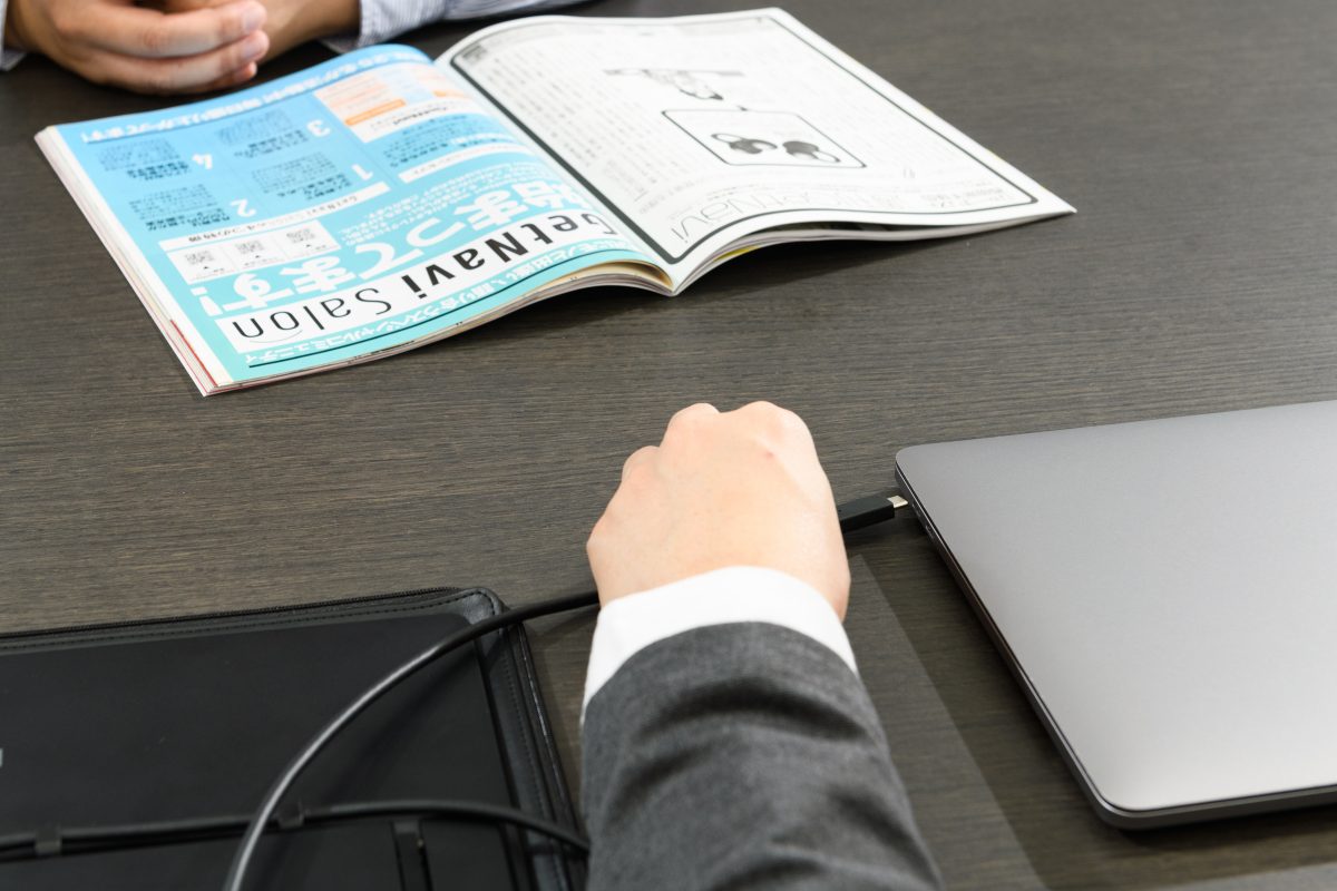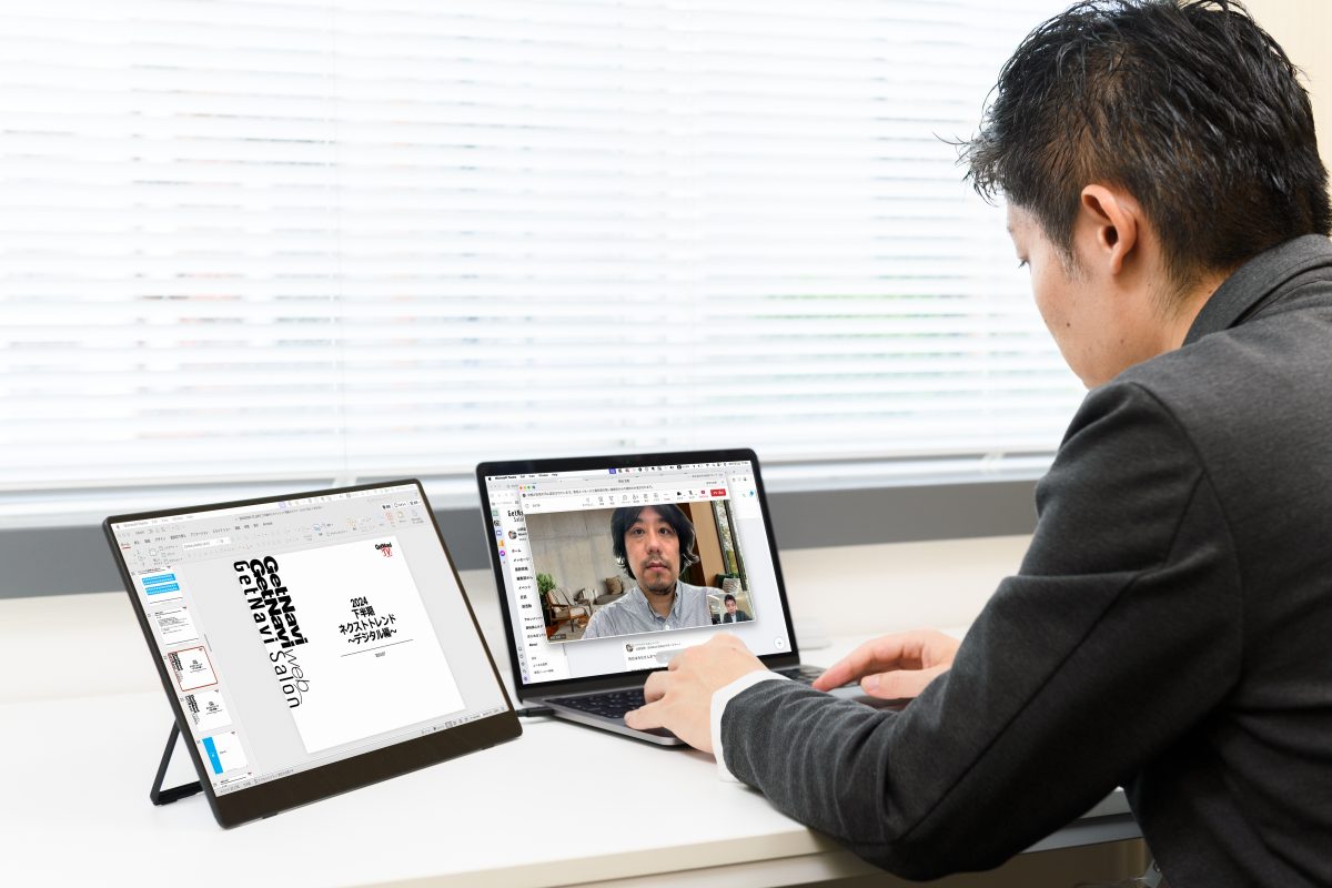 また、対面での打ち合わせなどではノートPCの画面を相手に見せたいときもあります。外付けディスプレイが用意されている会議室などであればケーブルを繋げばOKですが、設定に手間取ったり、そもそもディスプレイが用意されてないこともありますよね。