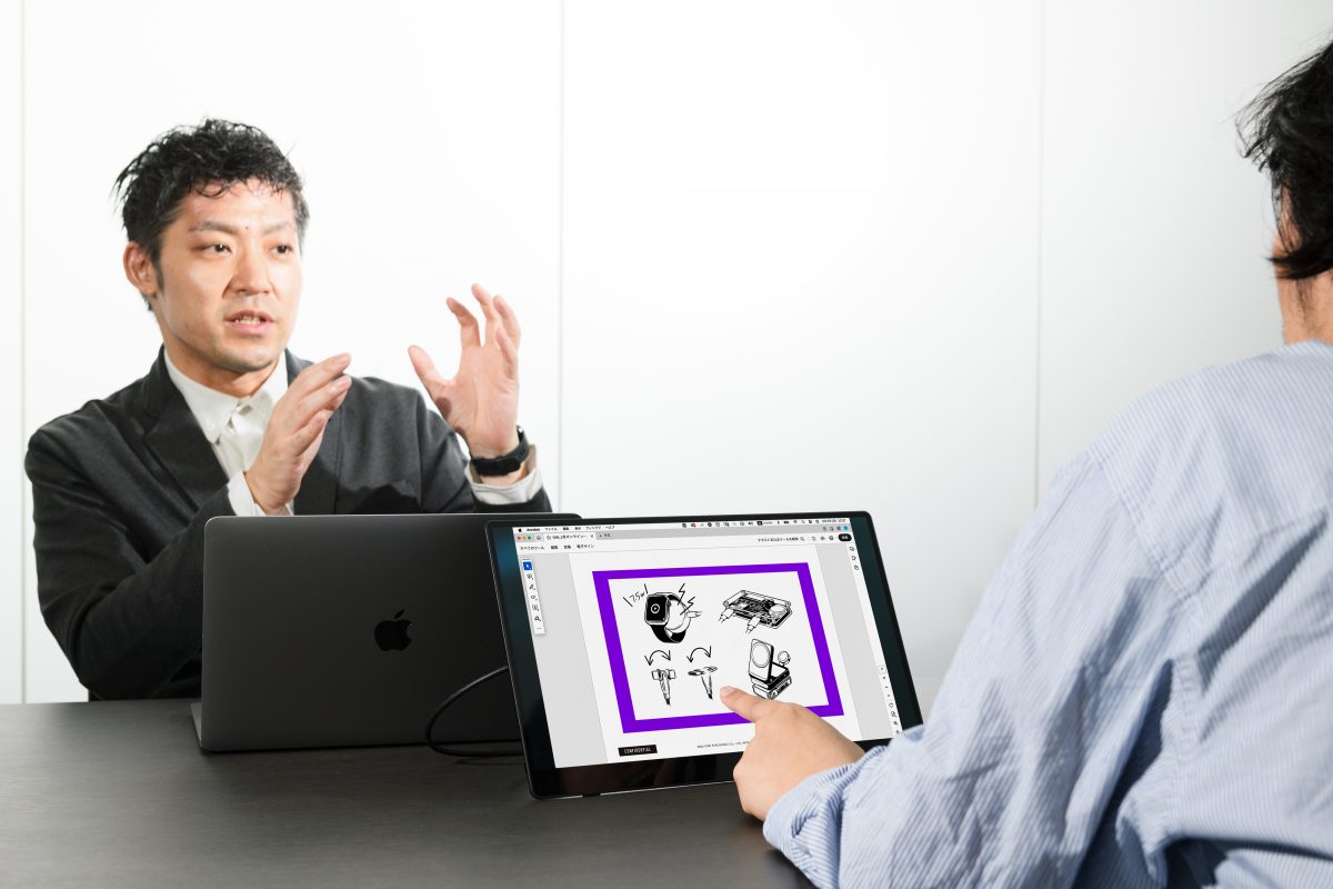 ノートPCの画面をRICOH Light Monitorで複製してしまえば、簡単に資料を見せることができます。タッチ操作対応なのを活かして、見ている資料に対してその場で書き込んでもらう、なんてコミュニケーションも実現できますね。