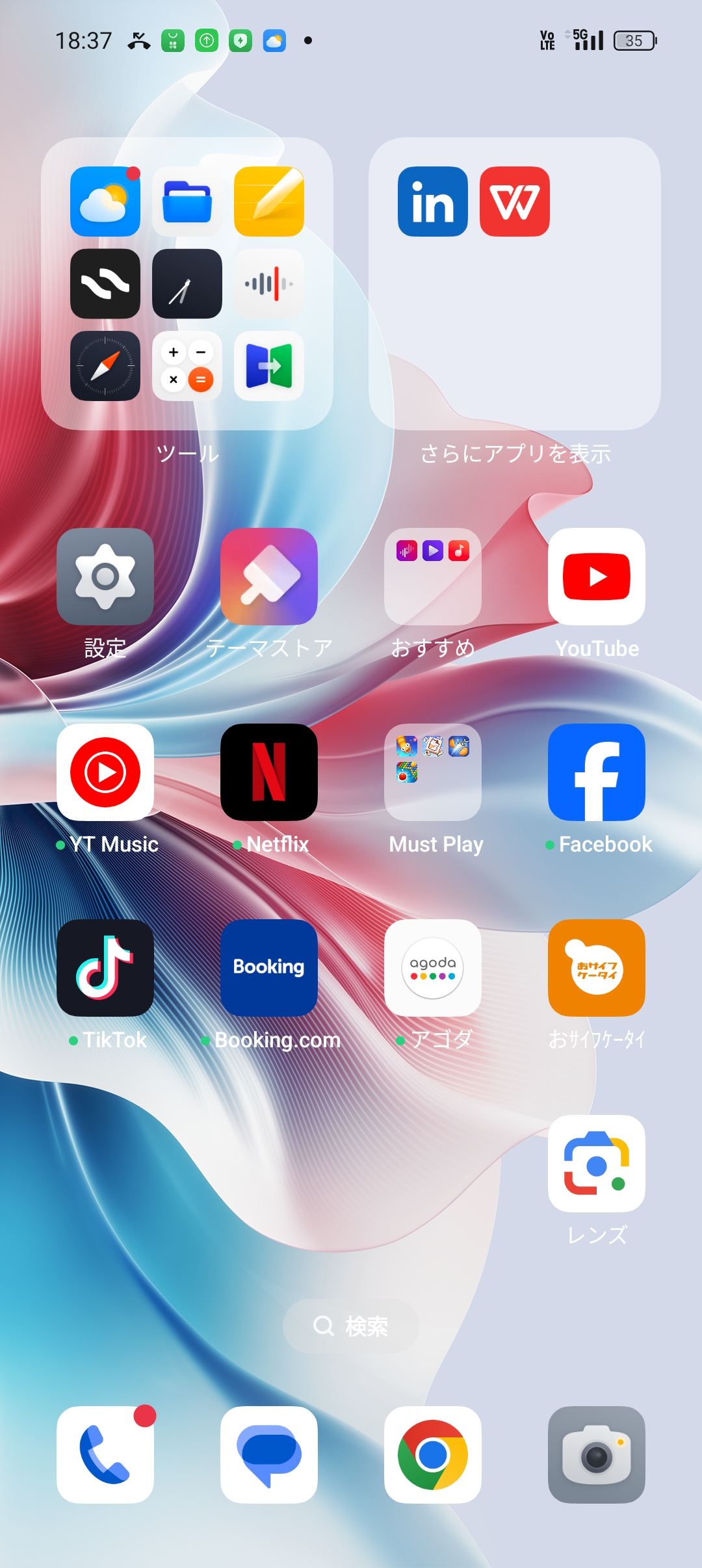 プリインストールアプリは多めで、アゴダやBooking.comのような旅行予約アプリのほか、カジュアルゲームがいくつか入っている点は気になります。これらのアプリを使わない人にはアンインストールを手間に感じるかもしれません。